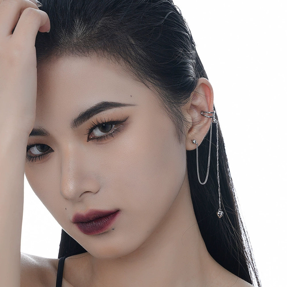 Simple Versatile S925 Sterling Silver Long Tassel Geometric Hollow Ear Clip For Women Electroplated