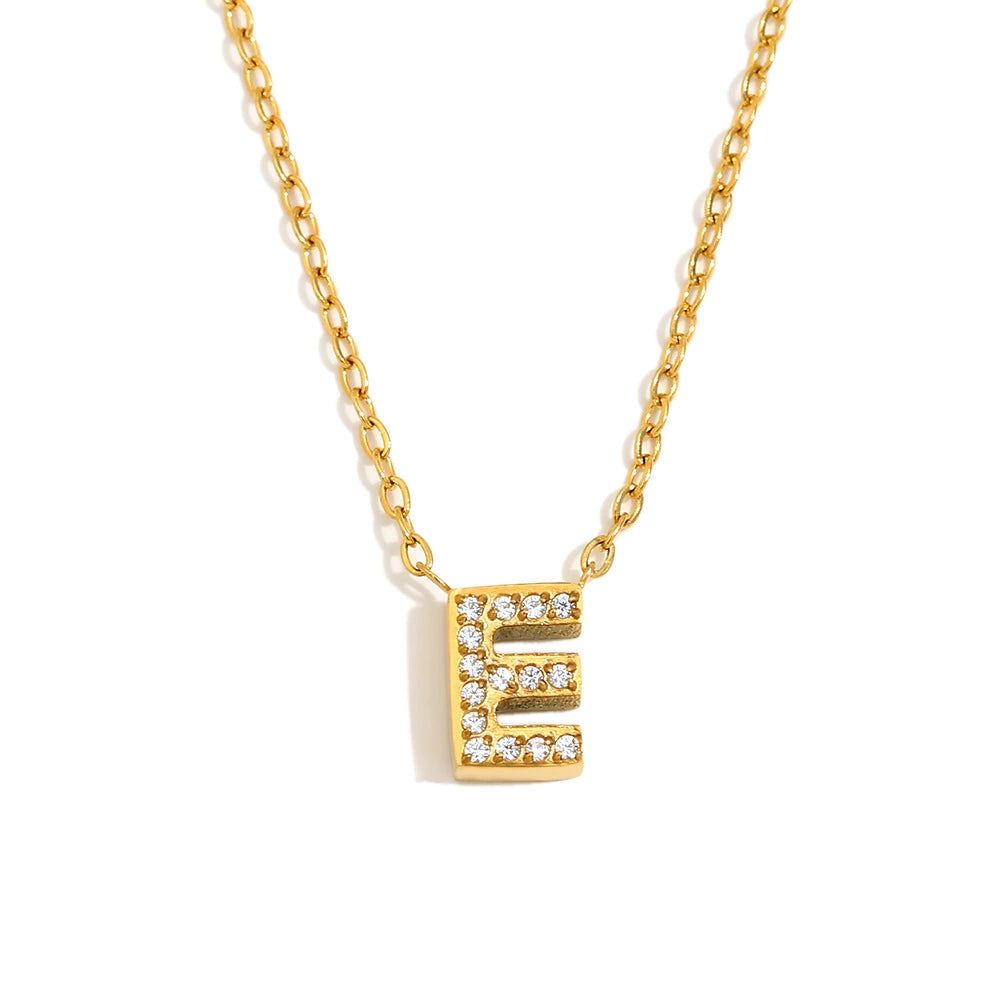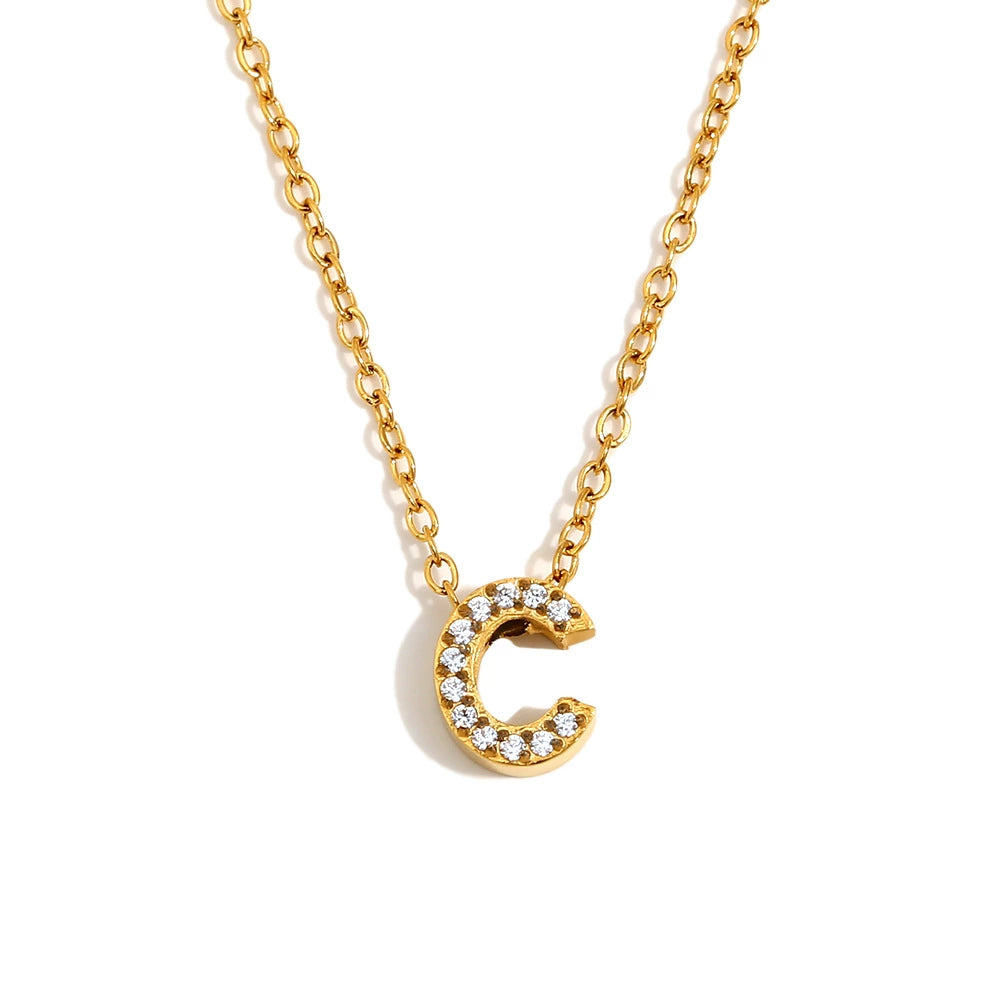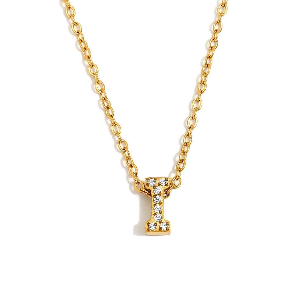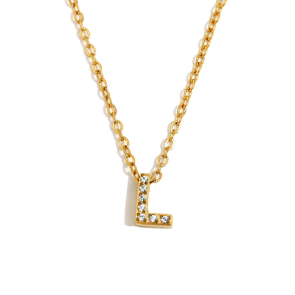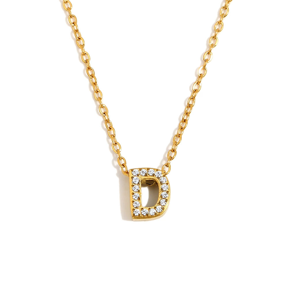 Simple Women's Stainless Steel Plated 18K Gold Letter Pendant Necklace With Electroplating