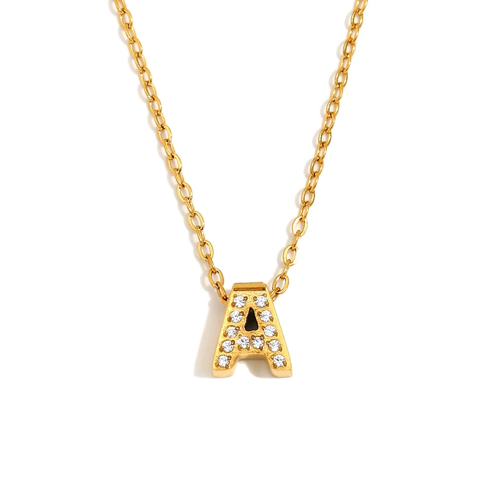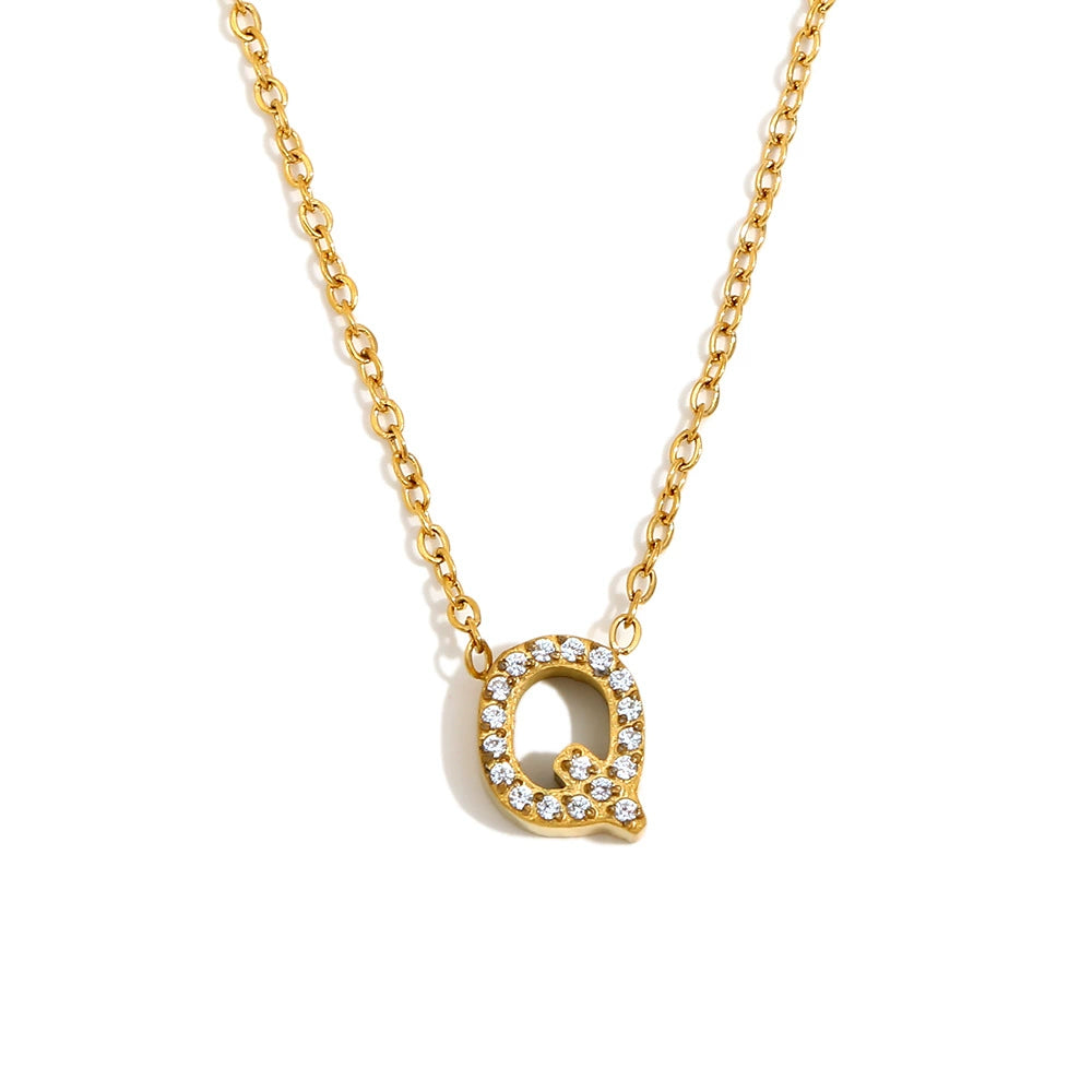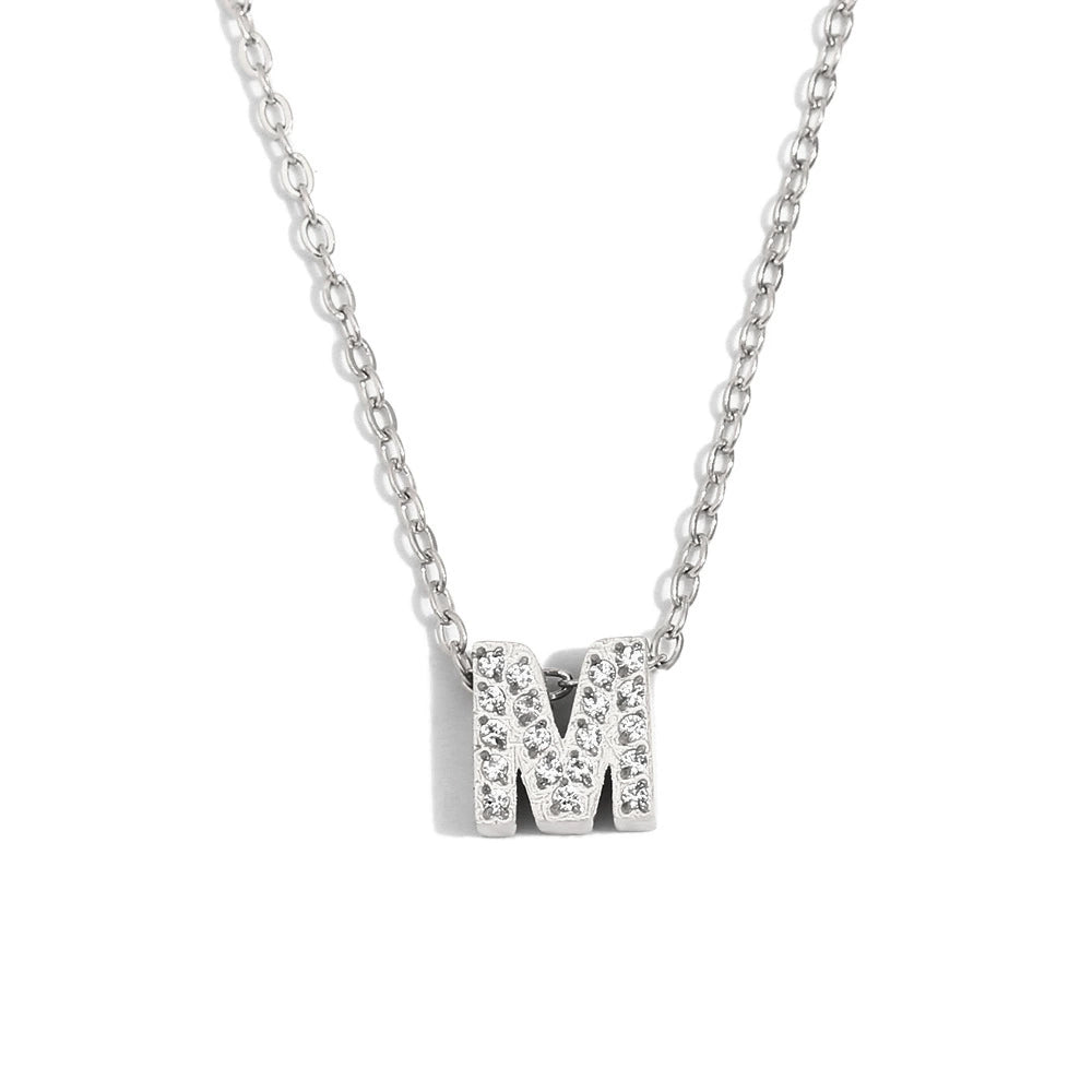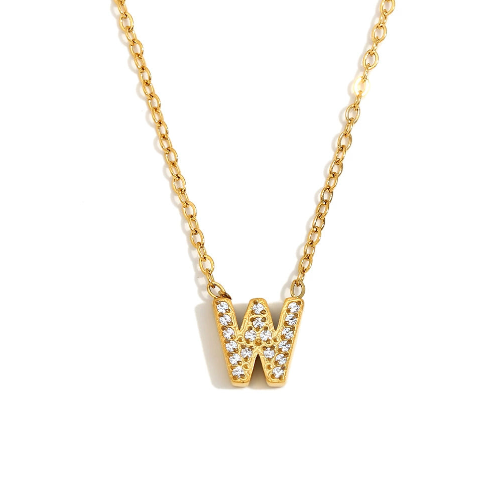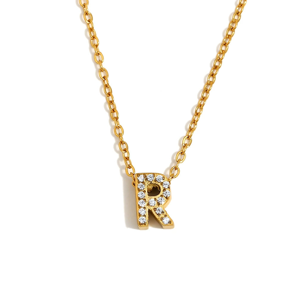 Simple Women's Stainless Steel Plated 18K Gold Letter Pendant Necklace With Electroplating