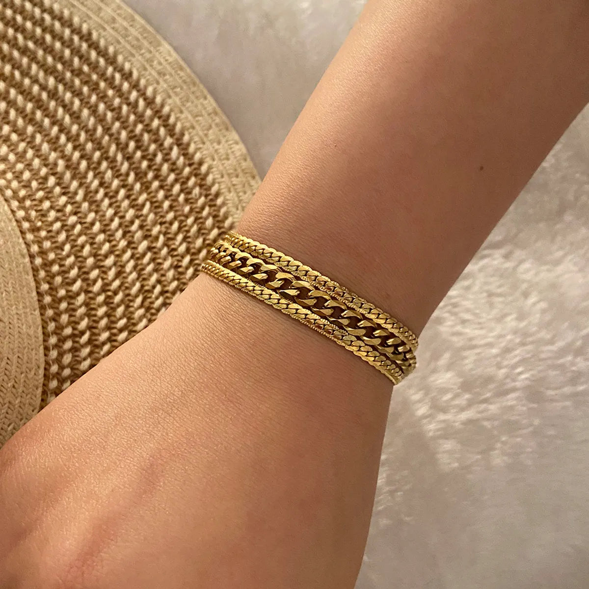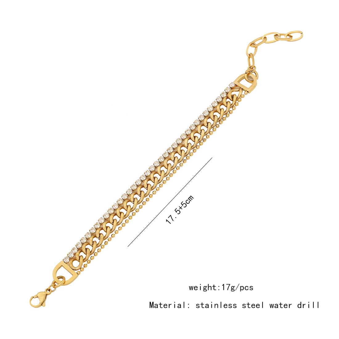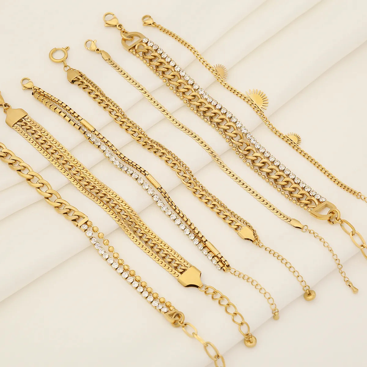 Solid Color Commute Geometric Stainless Steel Layered Plating Inlay Rhinestones Women's Bracelets