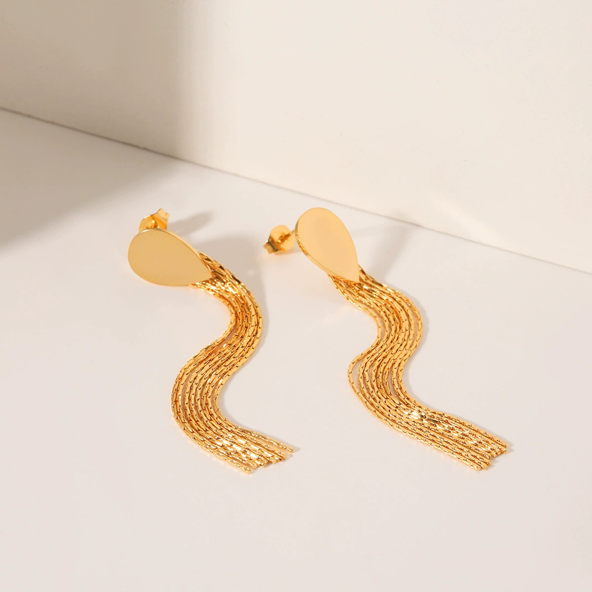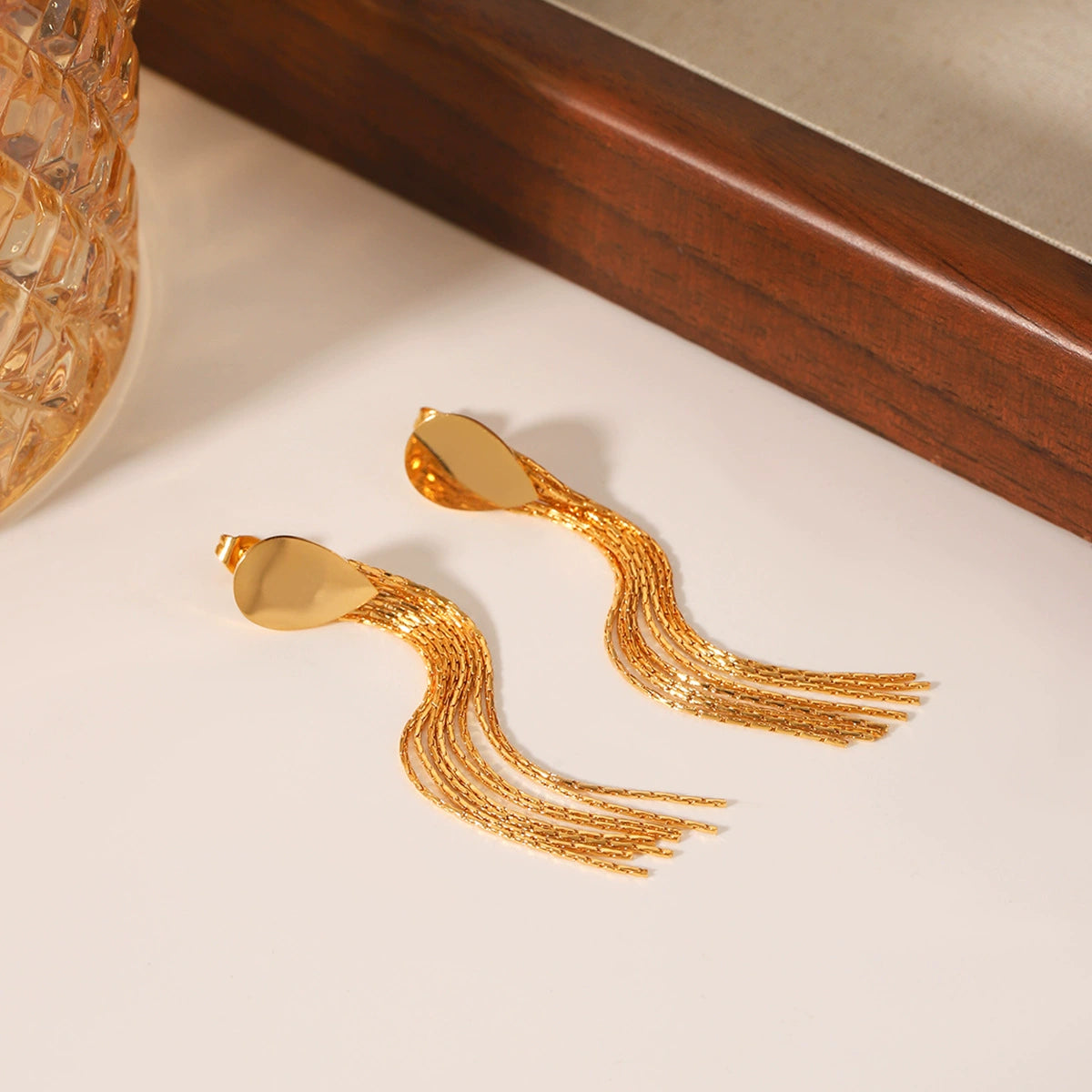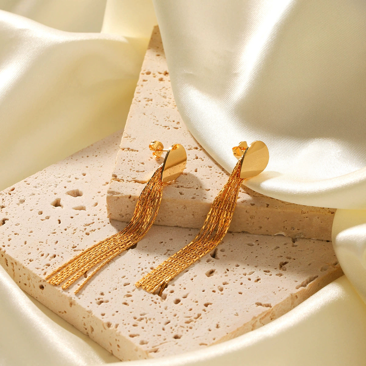 Stainless Steel Dropshaped Geometric Earrings With Electroplating Long Chain Tassel Fashionable And Highend Women's