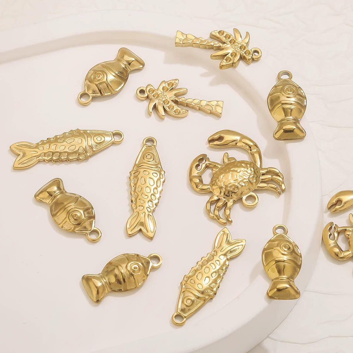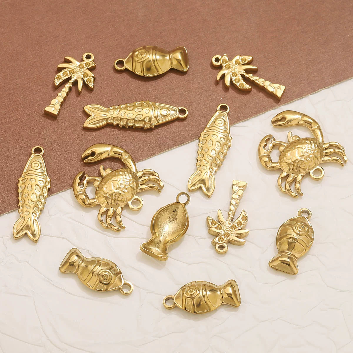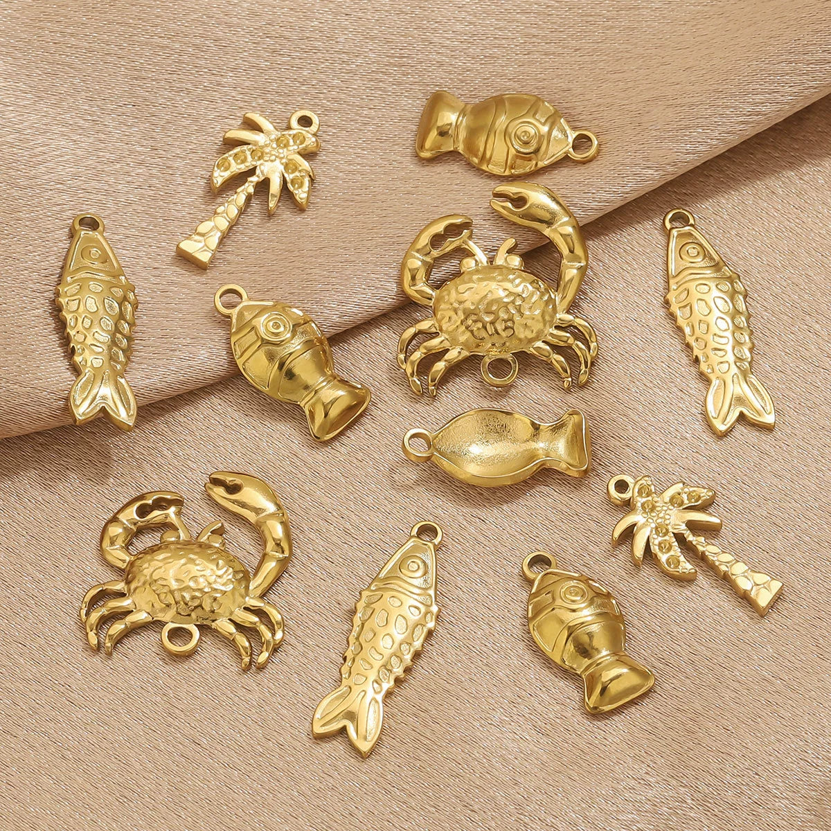 Stainless Steel Fish Crab Coconut Tree Pendant Jewelry Accessories Handmade Electroplated