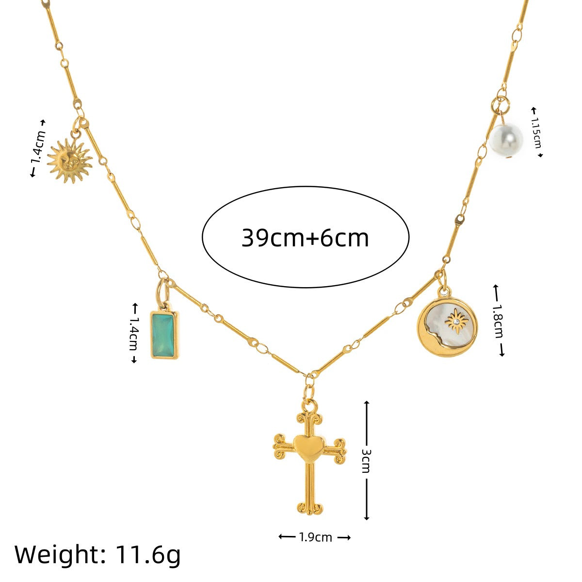 Stainless Steel Geometric Sun Moon Cross Pendant Necklace With Furnace Vacuum Plating 18K Gold Color