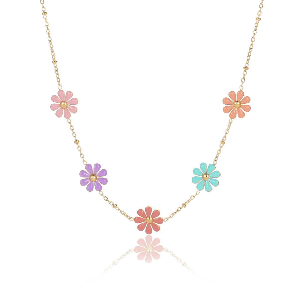 Stainless Steel Plated 18K Gold Daisy Pendant Women's Fashion Necklace