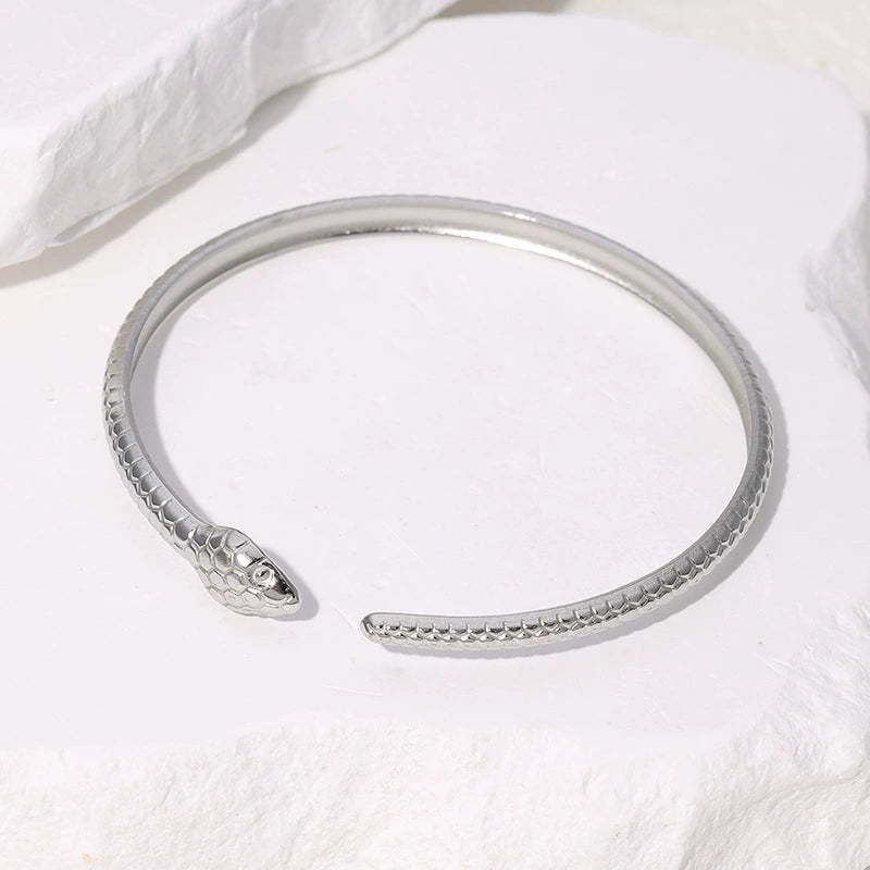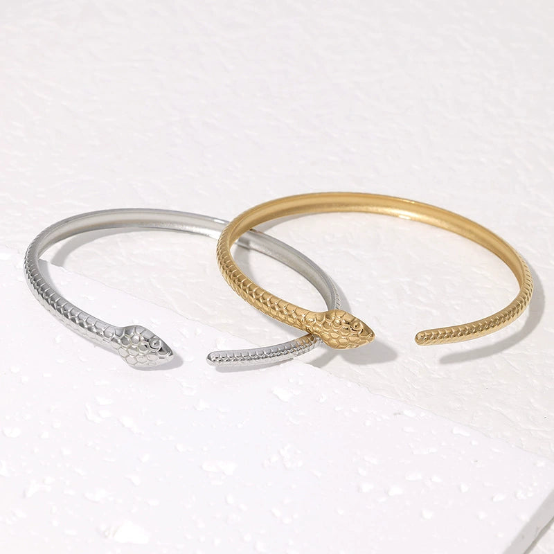Stainless Steel Snake Shaped Open Adjustable Creative Street Bracelet With Electroplating