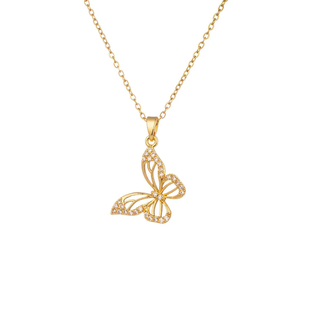 Titanium Steel Copper IG Style Sweet Hollow Out Inlay Butterfly Zircon Pendant Necklace