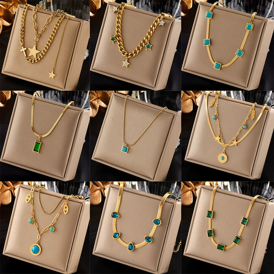 Titanium Steel Square Fivepointed Star Pendant Necklace Fashion Retro Design Electroplating Treatment For Women