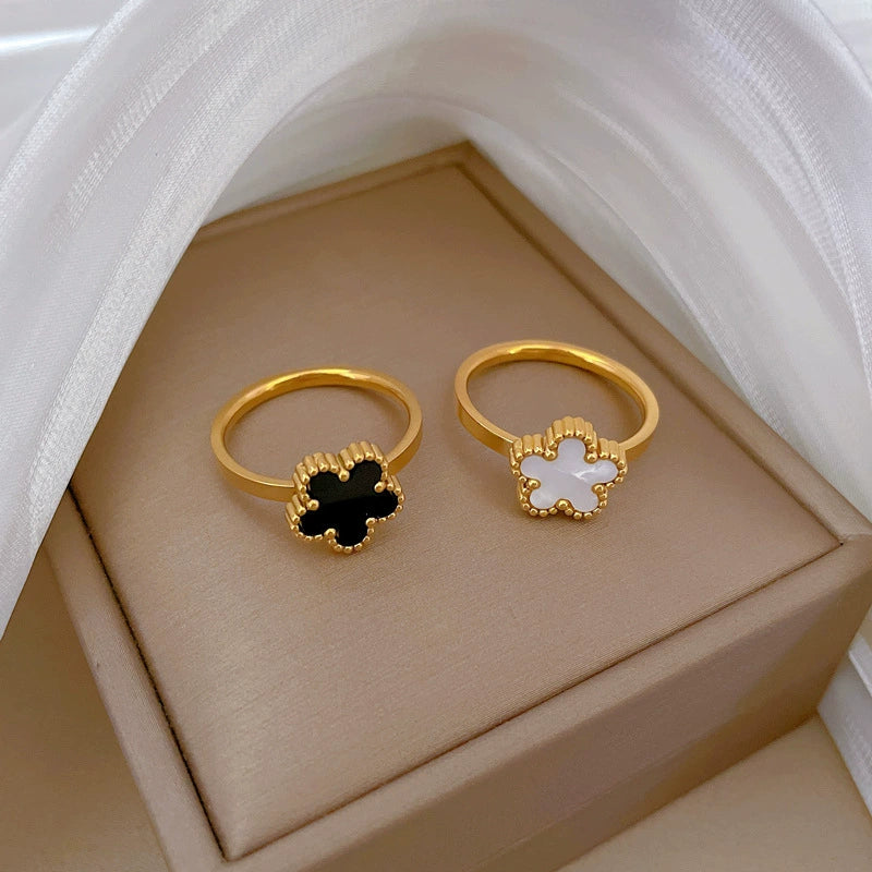 Titanium Steel Unisex Black And White Flower The Crown Pattern Polished Ring