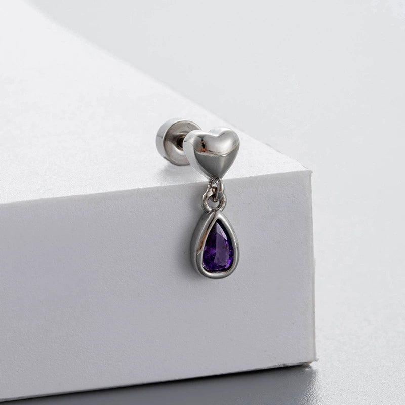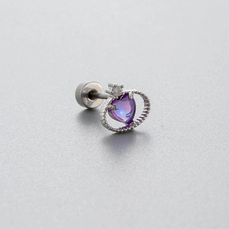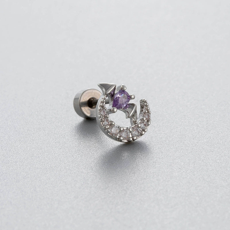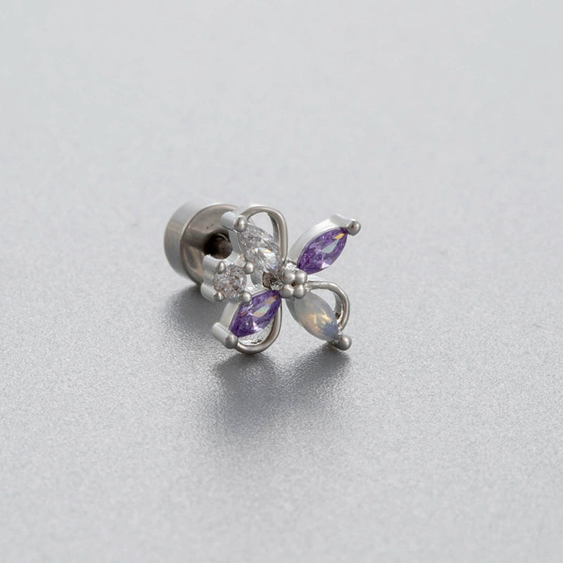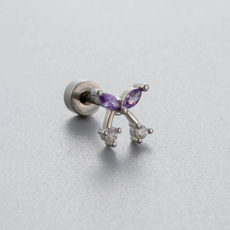 Titanium Steel Women's Bow Purple Zircon Earrings Ear Nails