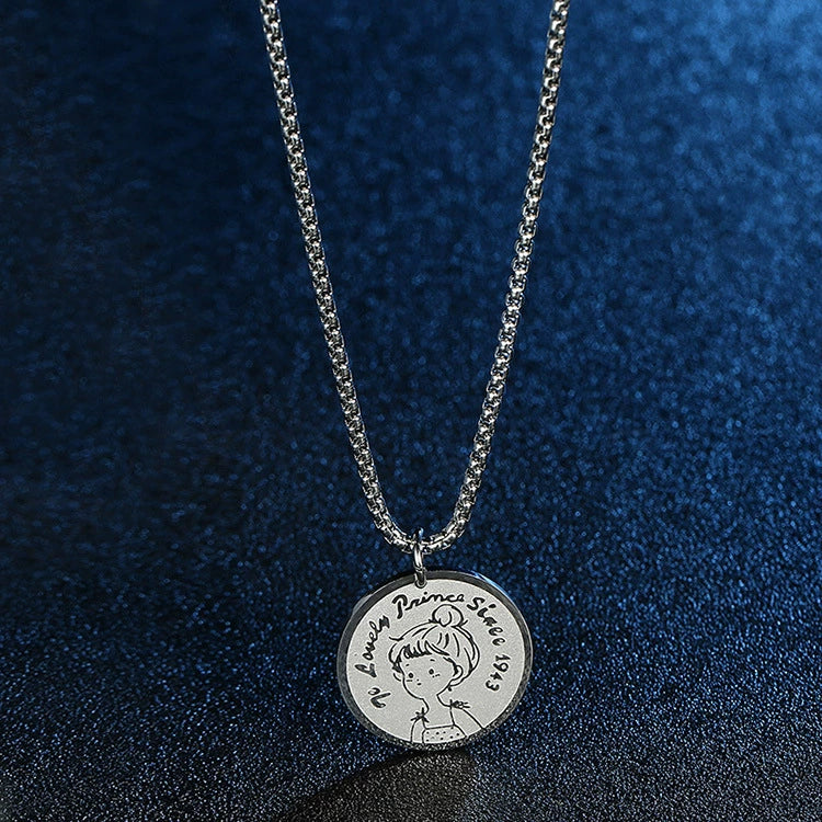 Unisex Titanium Steel Ball Chain Necklace With Cartoon Characters Pattern Cold Style Electroplated