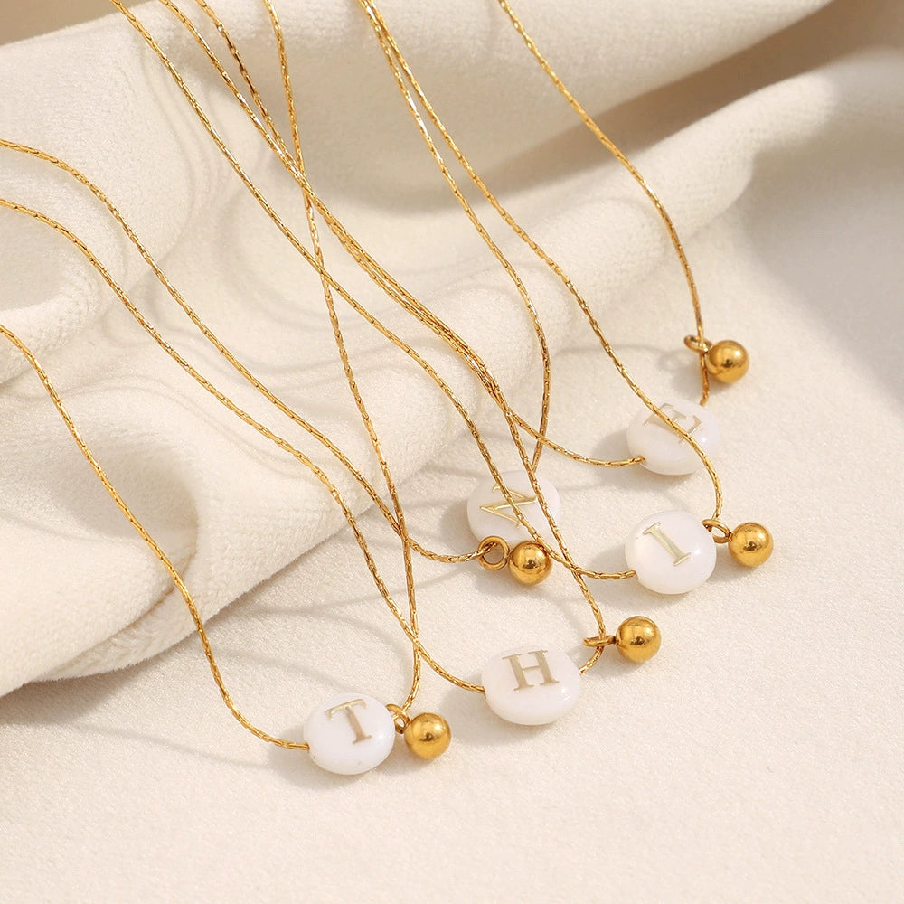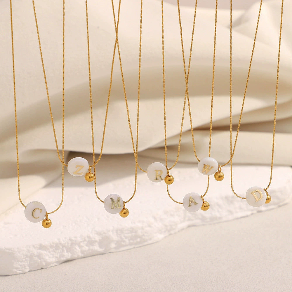 Versatile Vintage Women's Stainless Steel 18K Gold Plated Letter Bead Necklace Jewelry