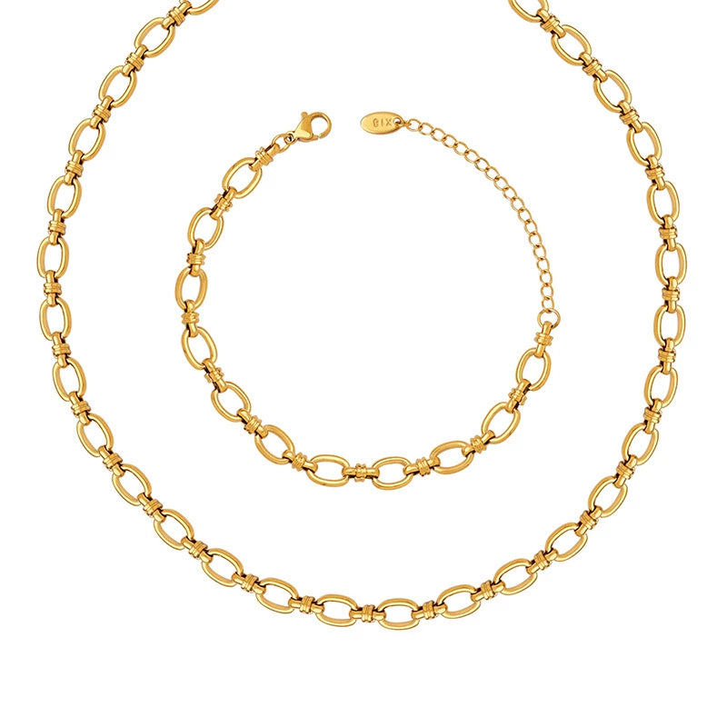 Wholesale Chain Link Rough Chain Joker Necklace And Bracelet Set In Titanium Steel With 18K Gold Plated Electroplating For Women Hip Hop Fashion Jewelry