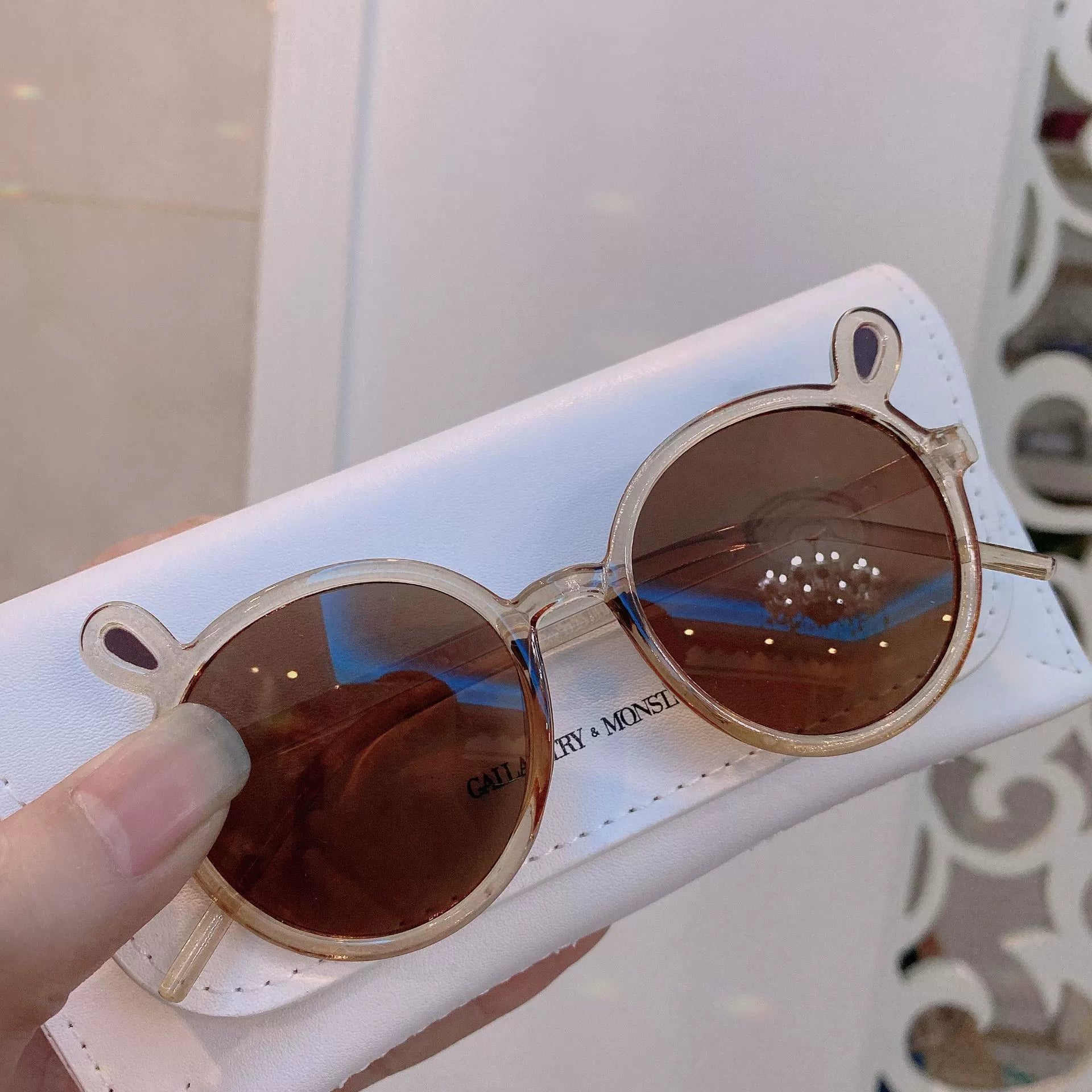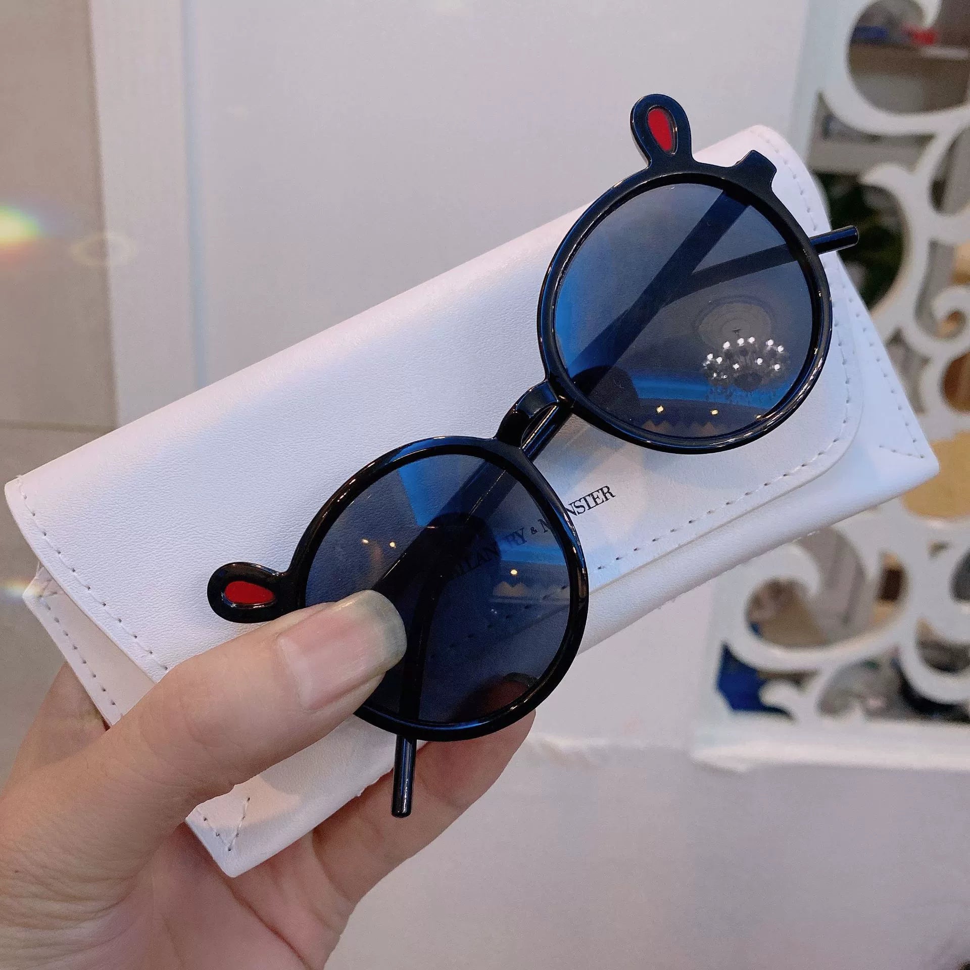Wholesale Children's Sunglasses Plastic Frame Round Frame With Cute Bear Ears Cartoon Design