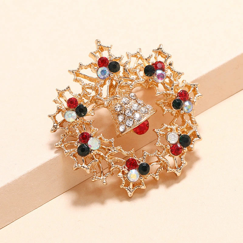 Wholesale Christmas Bell Alloy Rhinestone Encrusted Retro Brooch For Women