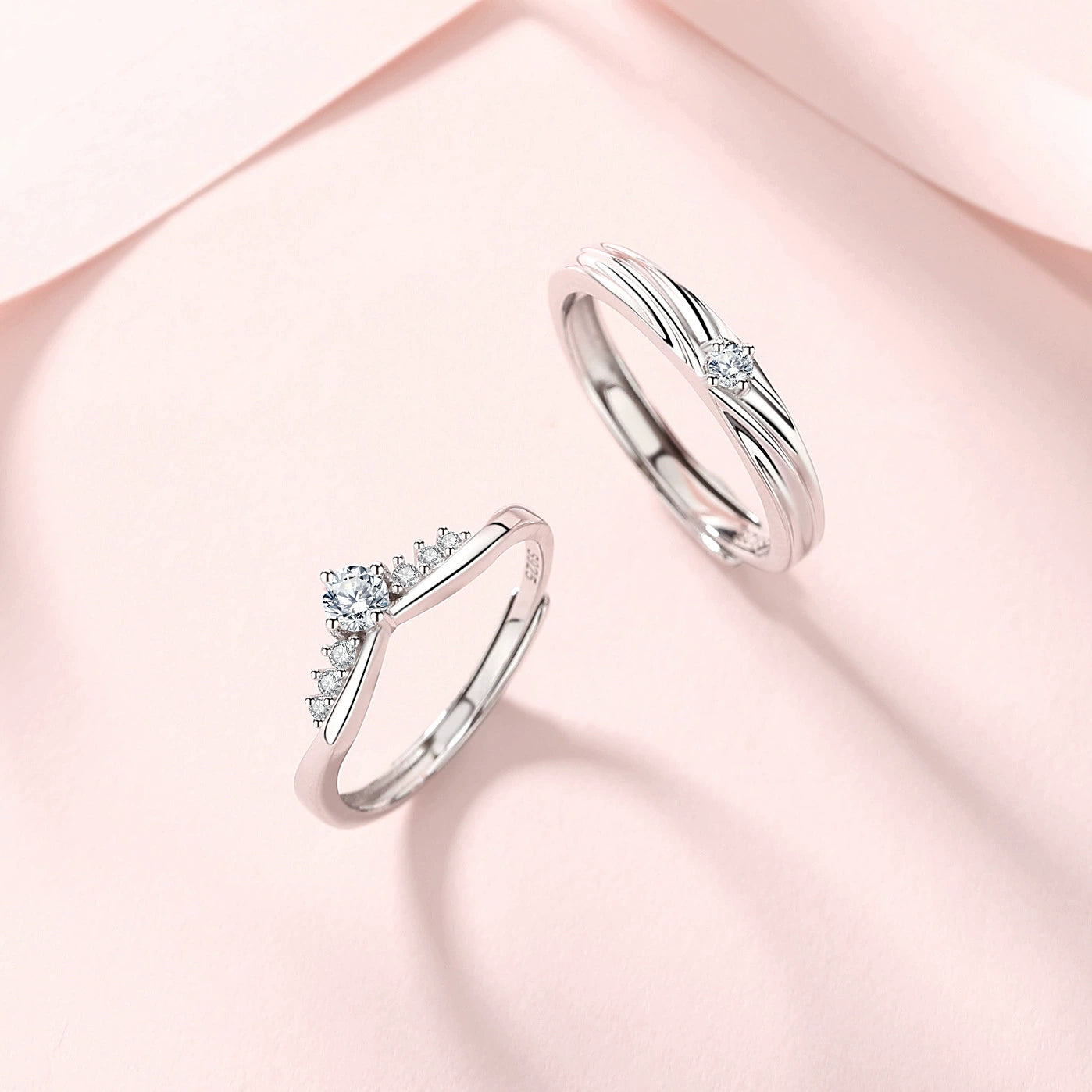 Wholesale Couple Pair Ring 925 Sterling Silver Diamond Styling Wave The Crown Pattern Adjustable Ring