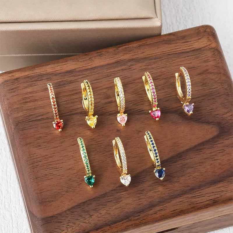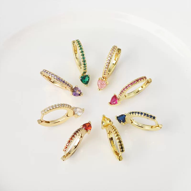 Wholesale Couple Style Copper Heart Shaped Electroplated Inlaid Zircon Earrings Jewelry