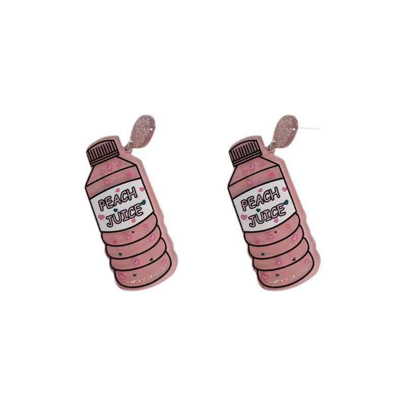 Wholesale Creative Painted Printing Pink Bottle Exaggerated Acrylic Earrings For Women
