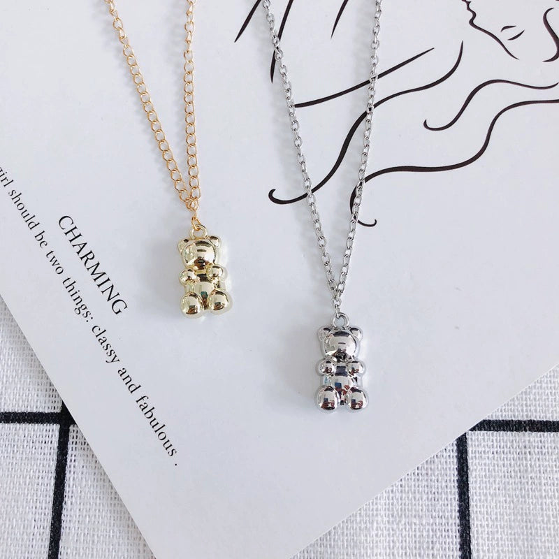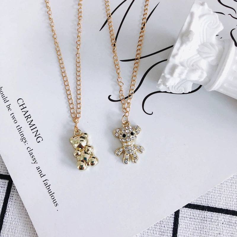 Wholesale Diy Alloy Jewelry Accessories With Electroplating Simple Bow And Bear Inlaid Small Pendant Necklace