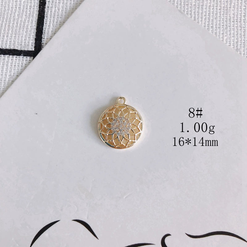 Wholesale Diy Jewelry Accessories Copper Plated Real Gold Hollow Double Hanging Small Pendant Earrings And Necklace Material Accessories