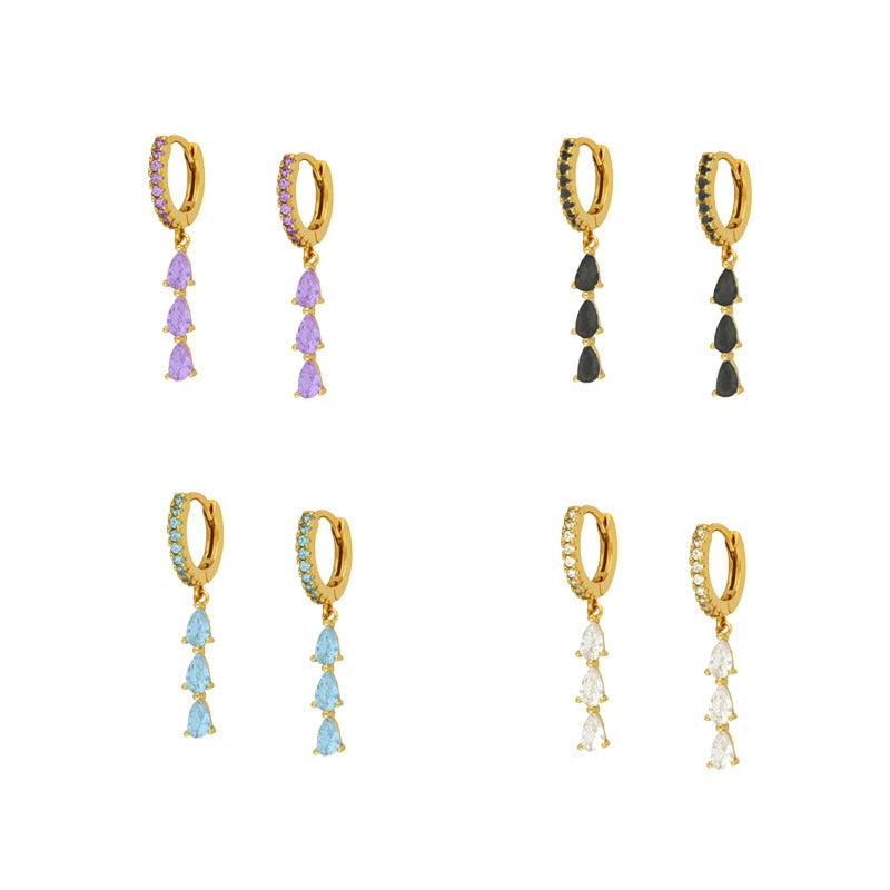 Wholesale Earrings Copper Geometric Environmental Protection Electroplated Water Drop Color Diamond Accessories