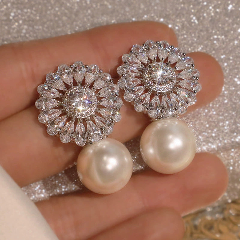 Wholesale Earrings Copper Zircon Imitation Pearl Flower Baroque Style For Women