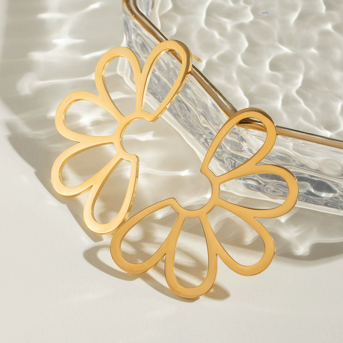 Wholesale Earrings Stainless Steel Half Flower Hollow Geometric Retro Electroplated