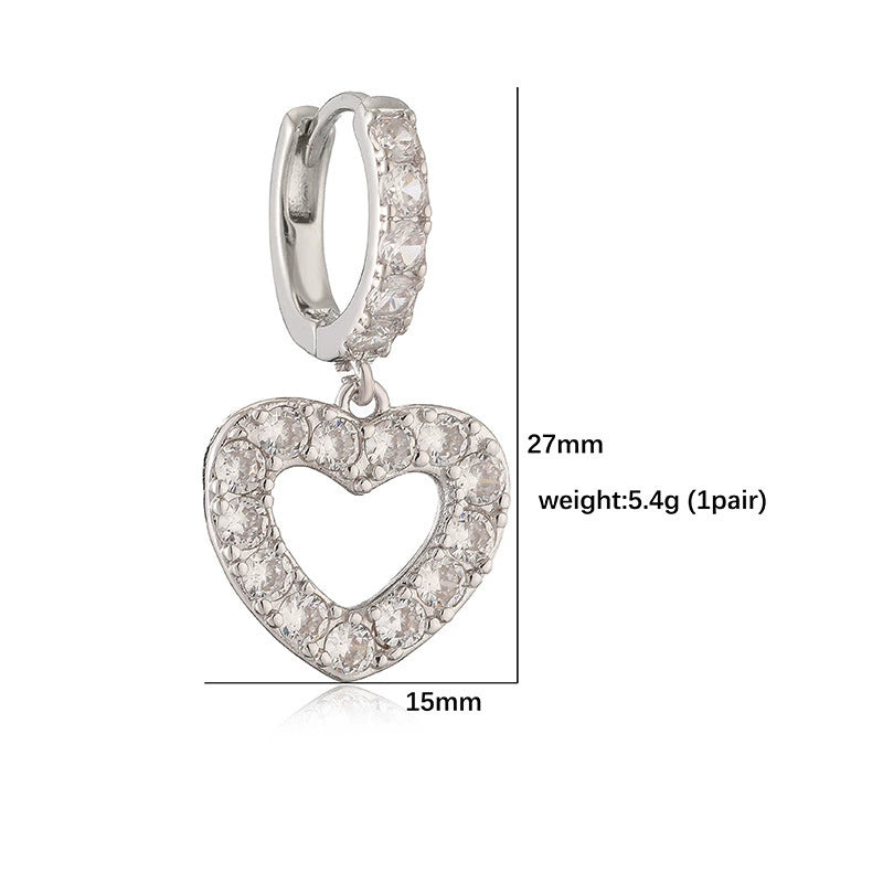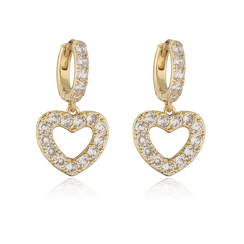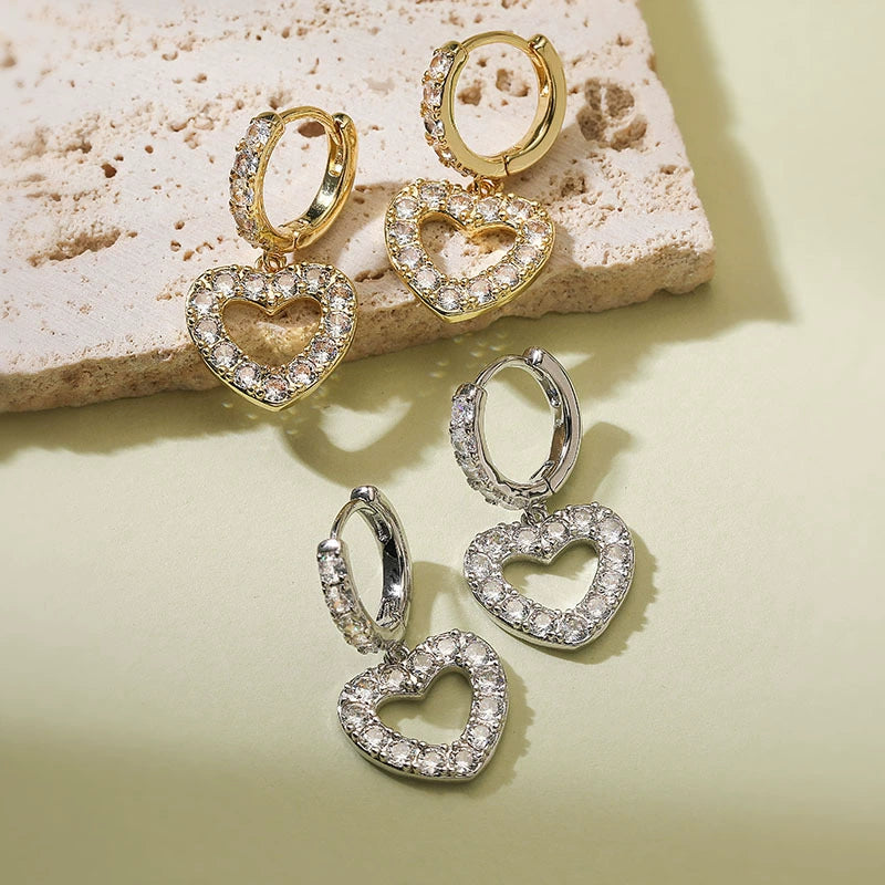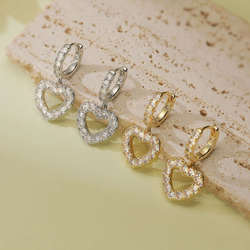Wholesale Elegant Copper Inlaid Zirconium Heartshaped Hollow Love Earrings For Women