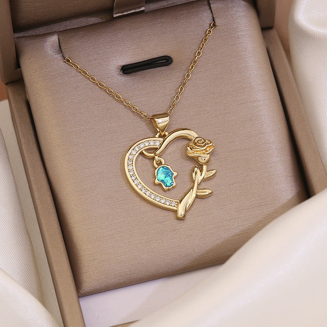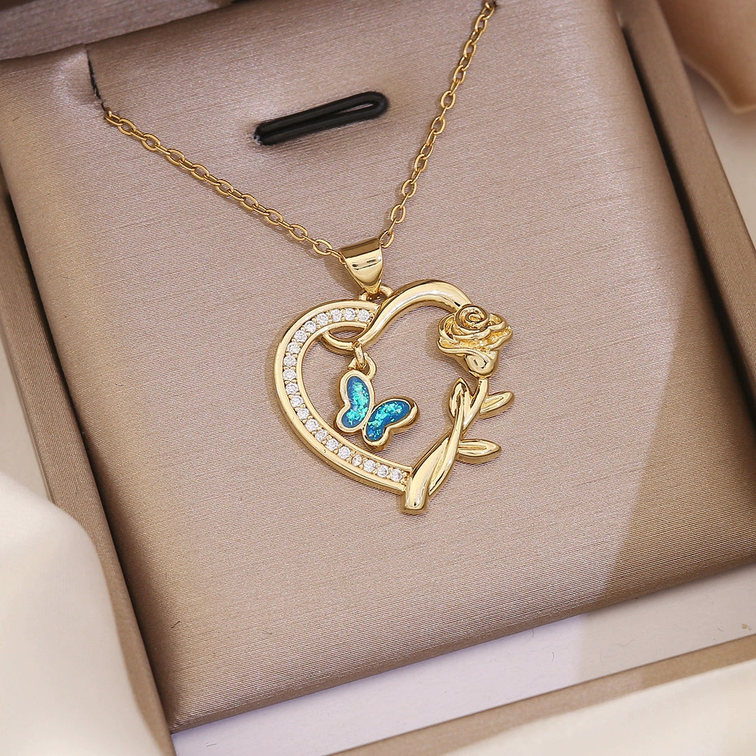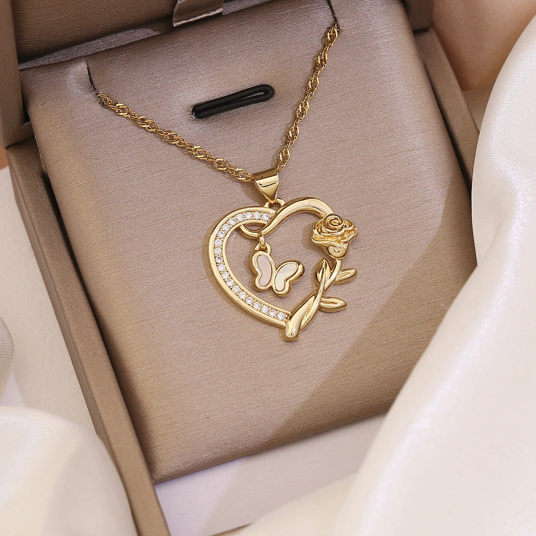 Wholesale Fashion Plated Copper Love Heart Shape Butterfly Pendant Necklace