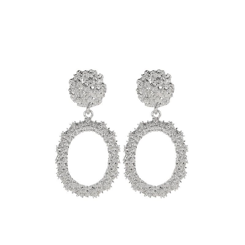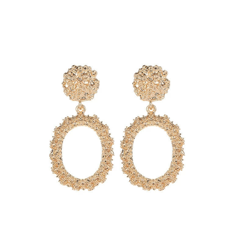 Wholesale Geometric Exaggerated Circle Relief Frosted Alloy Earrings For Ladies With Electroplating Treatment