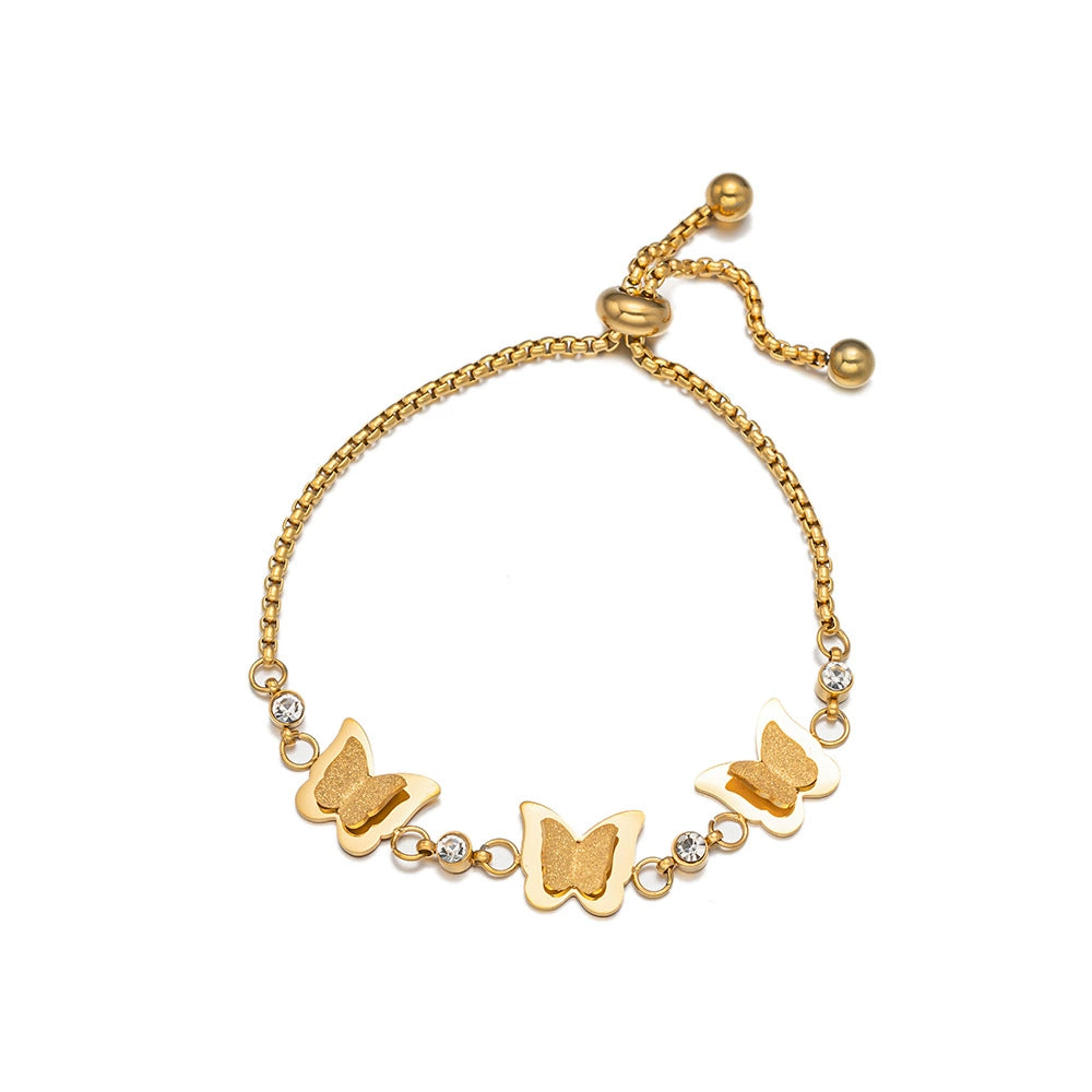 Wholesale Golden Titanium Steel Electroplated Butterfly Chain Bracelet For Women