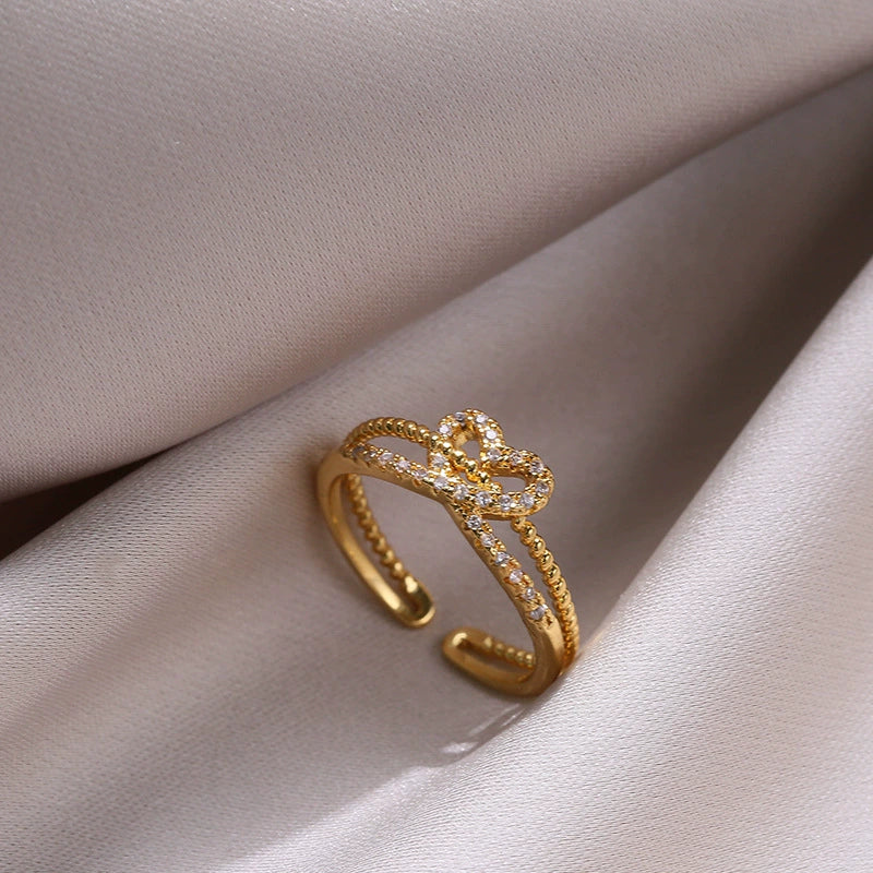 Wholesale Heartshaped Copper Inlaid Zircon Minimalist Women's Open Ring Jewelry