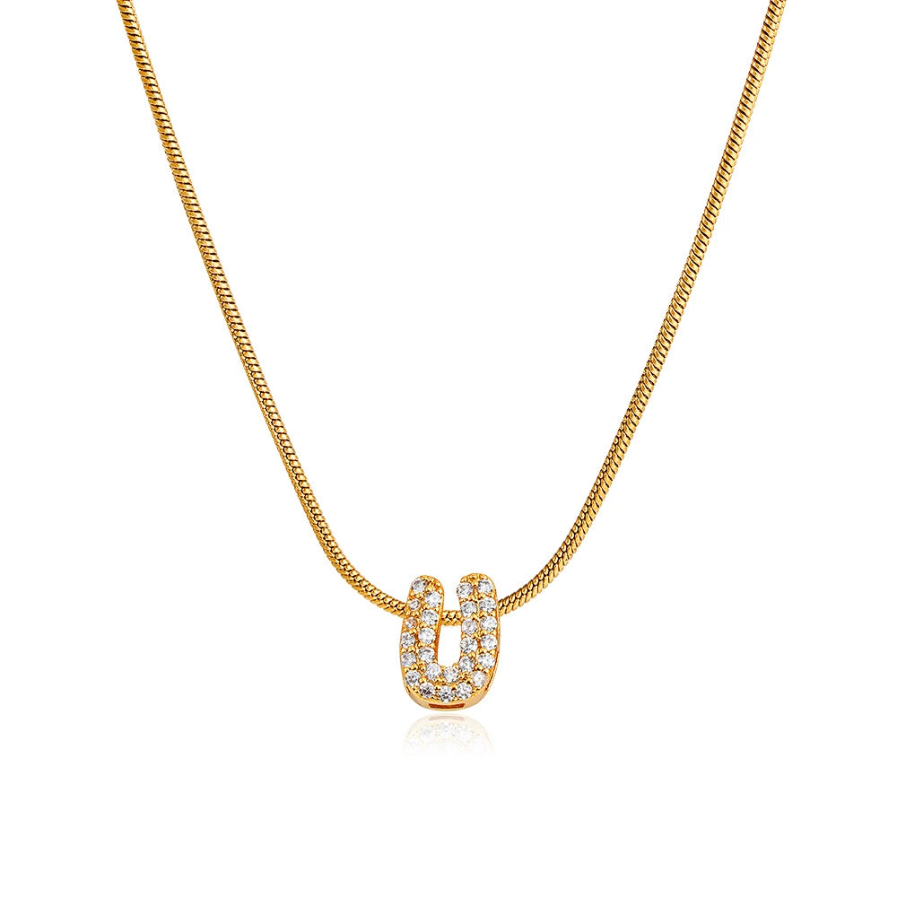 Wholesale Jewelry Copper Inlaid Zircon Letter Pendant Necklace Light Luxury Style