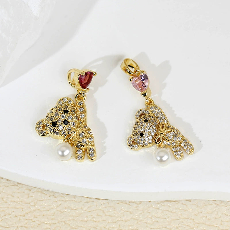 Wholesale Jewelry Copper Plated Real Gold Animal Love Bear Pendant Necklace And Earrings Accessories For Women