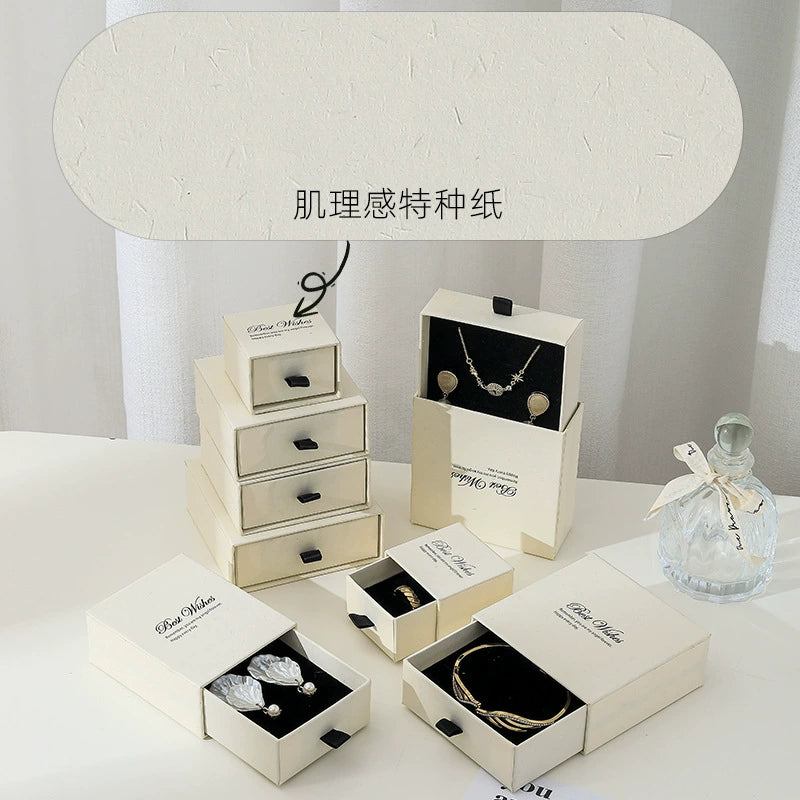 Wholesale Jewelry Packaging Box Earth White Light Luxury Paper Cardboard Jewelry Drawer Storage
