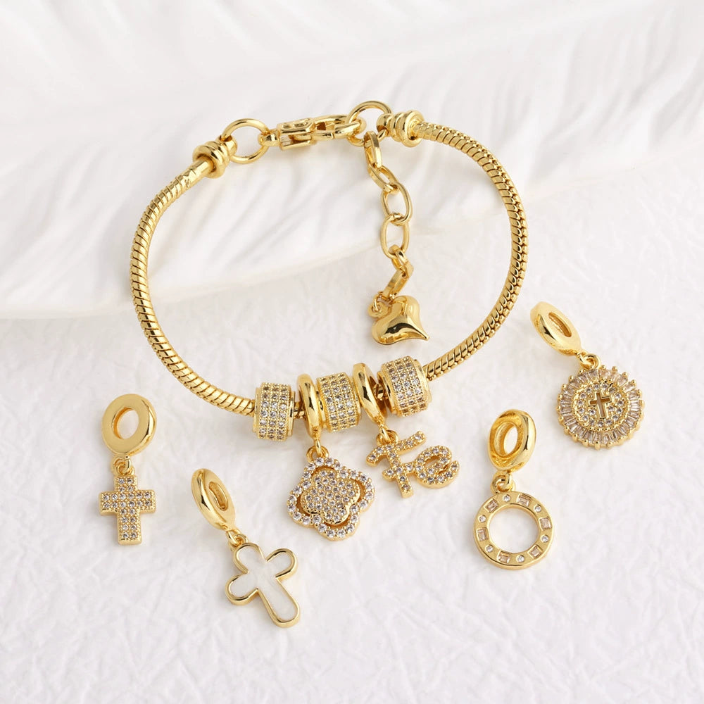 Wholesale Jewelry Simple Cross Pendant Copper 18K Gold Plated Bracelet Accessories