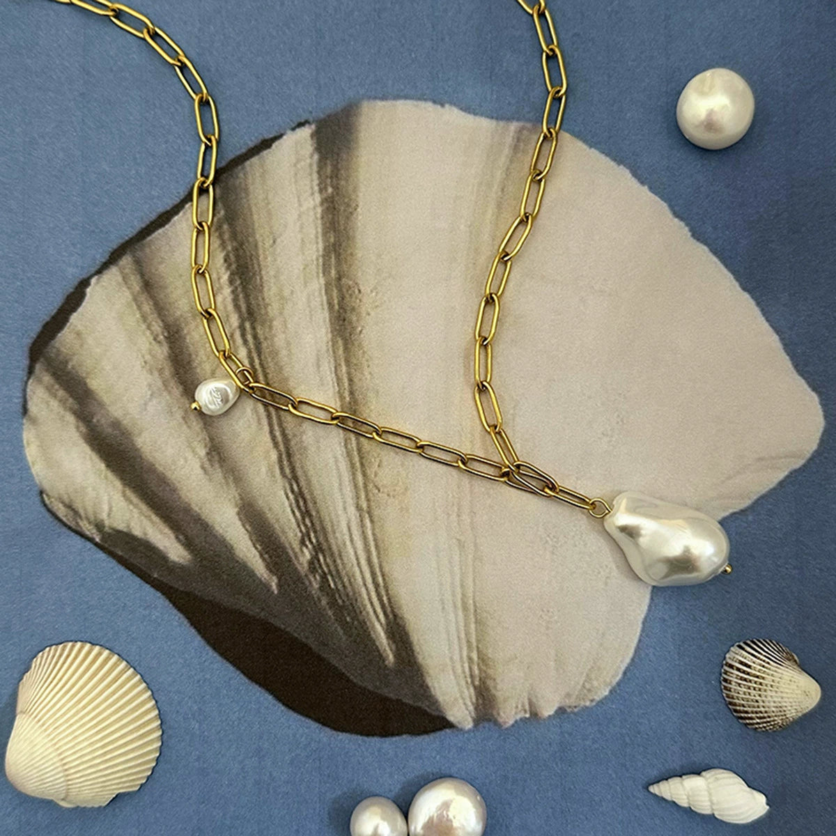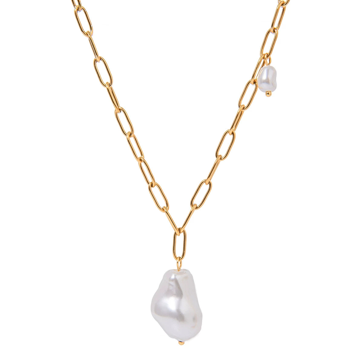 Wholesale Jewelry Stainless Steel Pearl Pendant Necklace Baroque Style 18K Gold Plated Electroplated Specialshaped