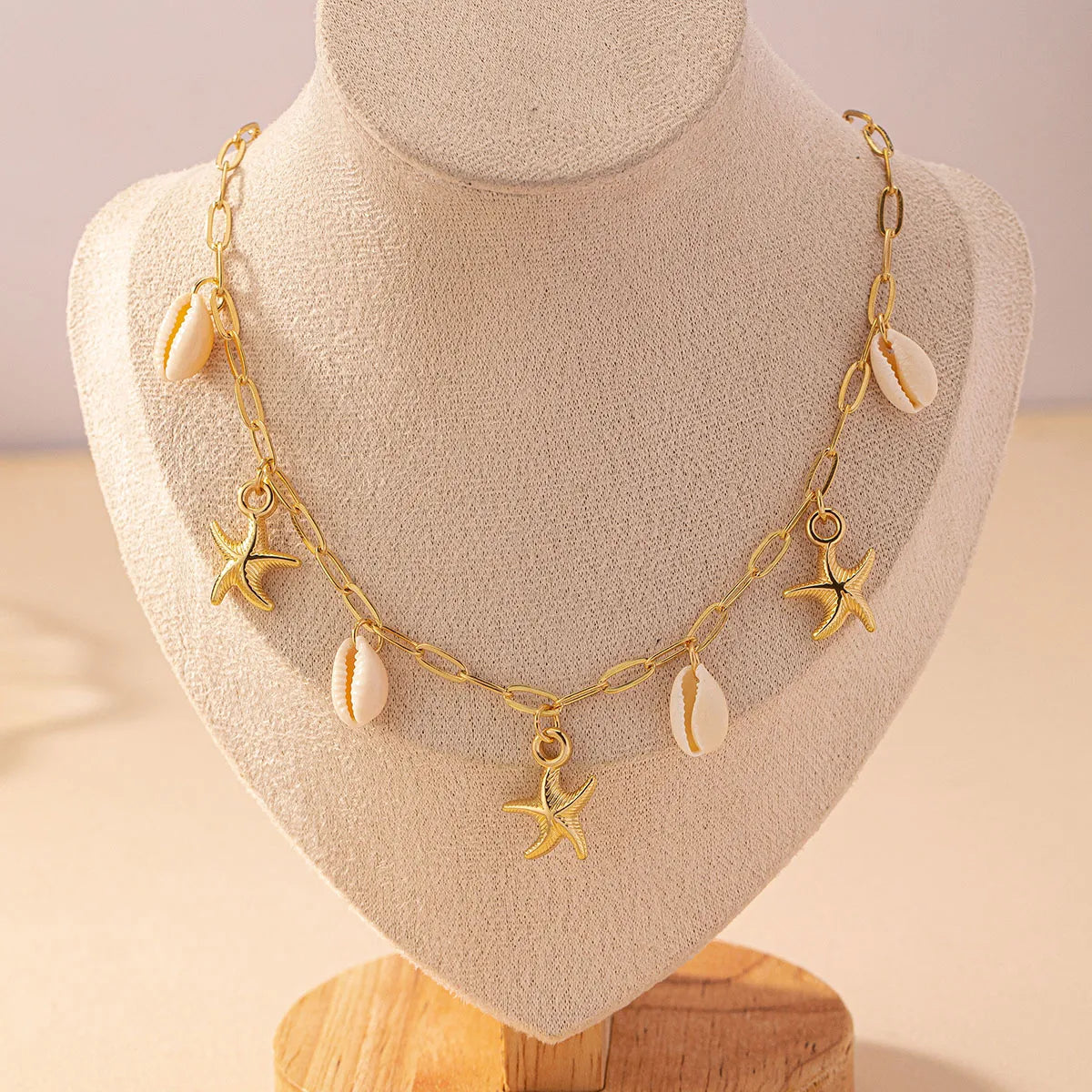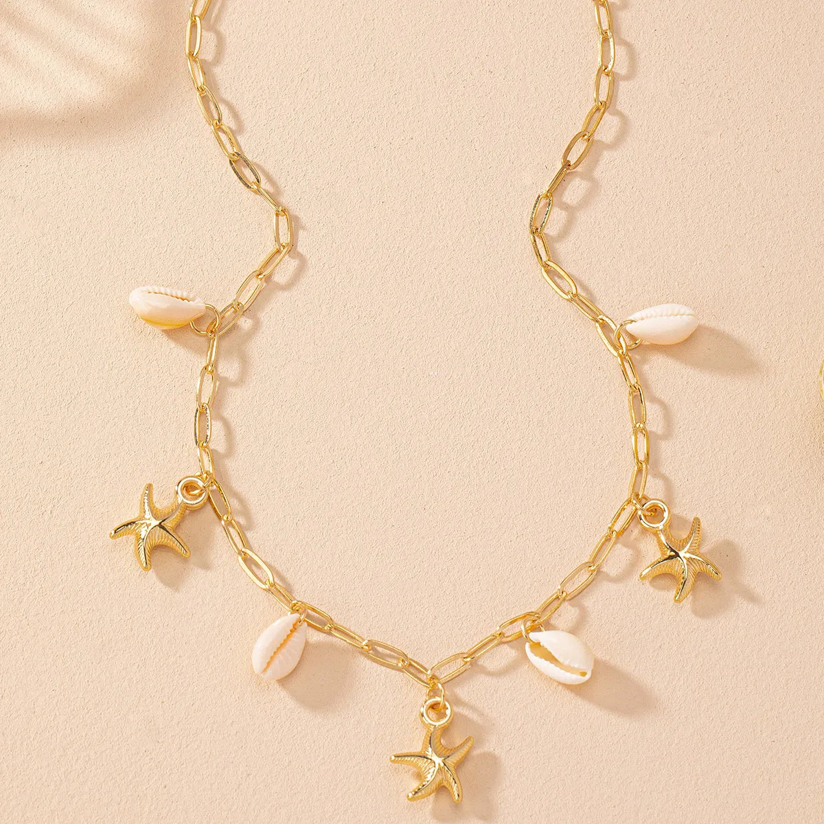 Wholesale Jewelry Vacation Marine Style Solid Color Alloy Shell Necklace