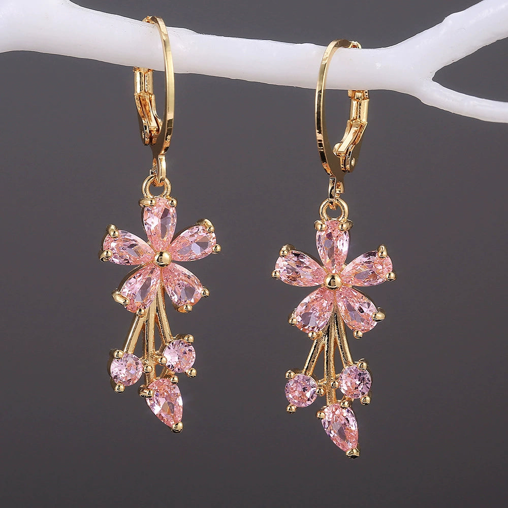 Wholesale Ladies Copper Inlaid Zircon Flower Earrings