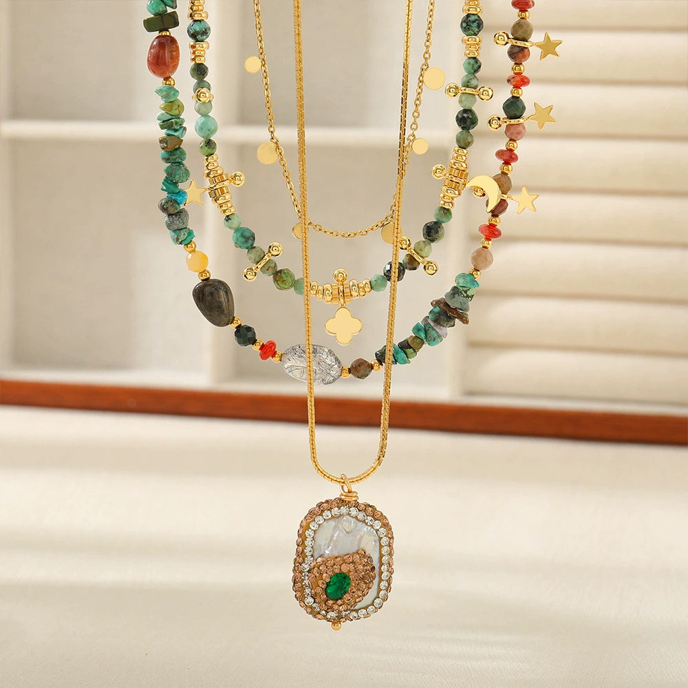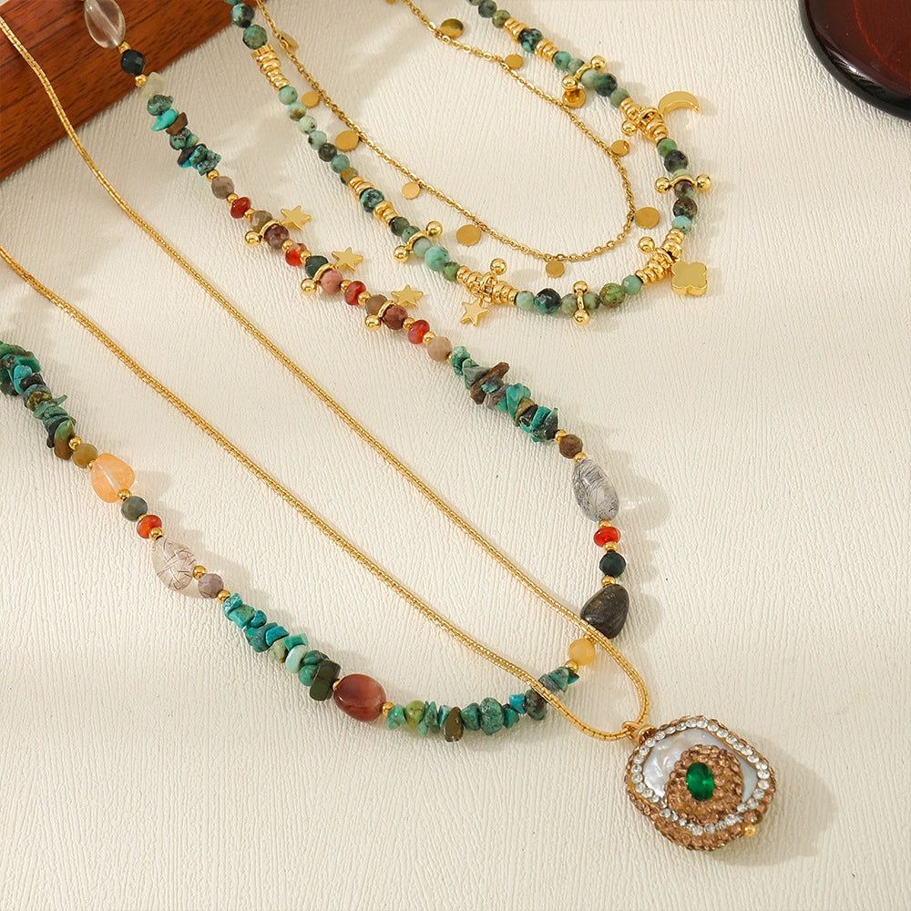 Wholesale Necklace African Pine Agate Red Agate Copper Natural Stone Geometric Handmade Vintage Style