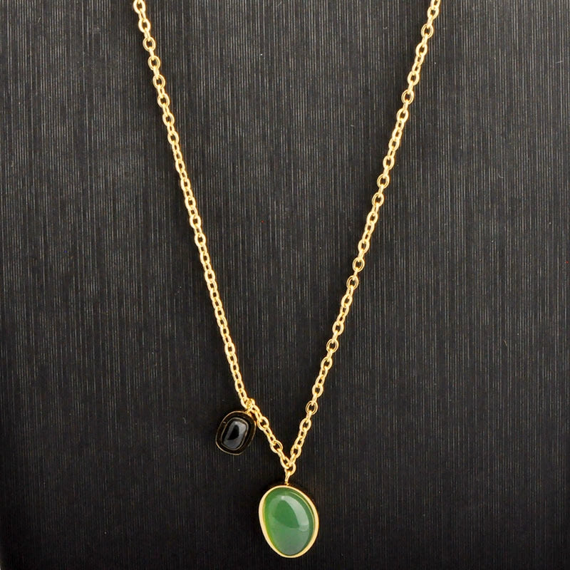 Wholesale Necklace Green Agate Irregular Double Pendant Clavicle Chain Titanium Steel 18K Gold Plated Geometric Style