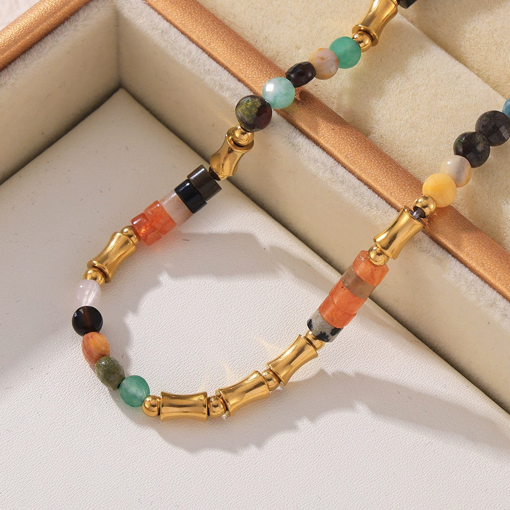 Wholesale Necklace 316L Stainless Steel Beaded Natural Stone Geometric Hiphop Style Electroplated