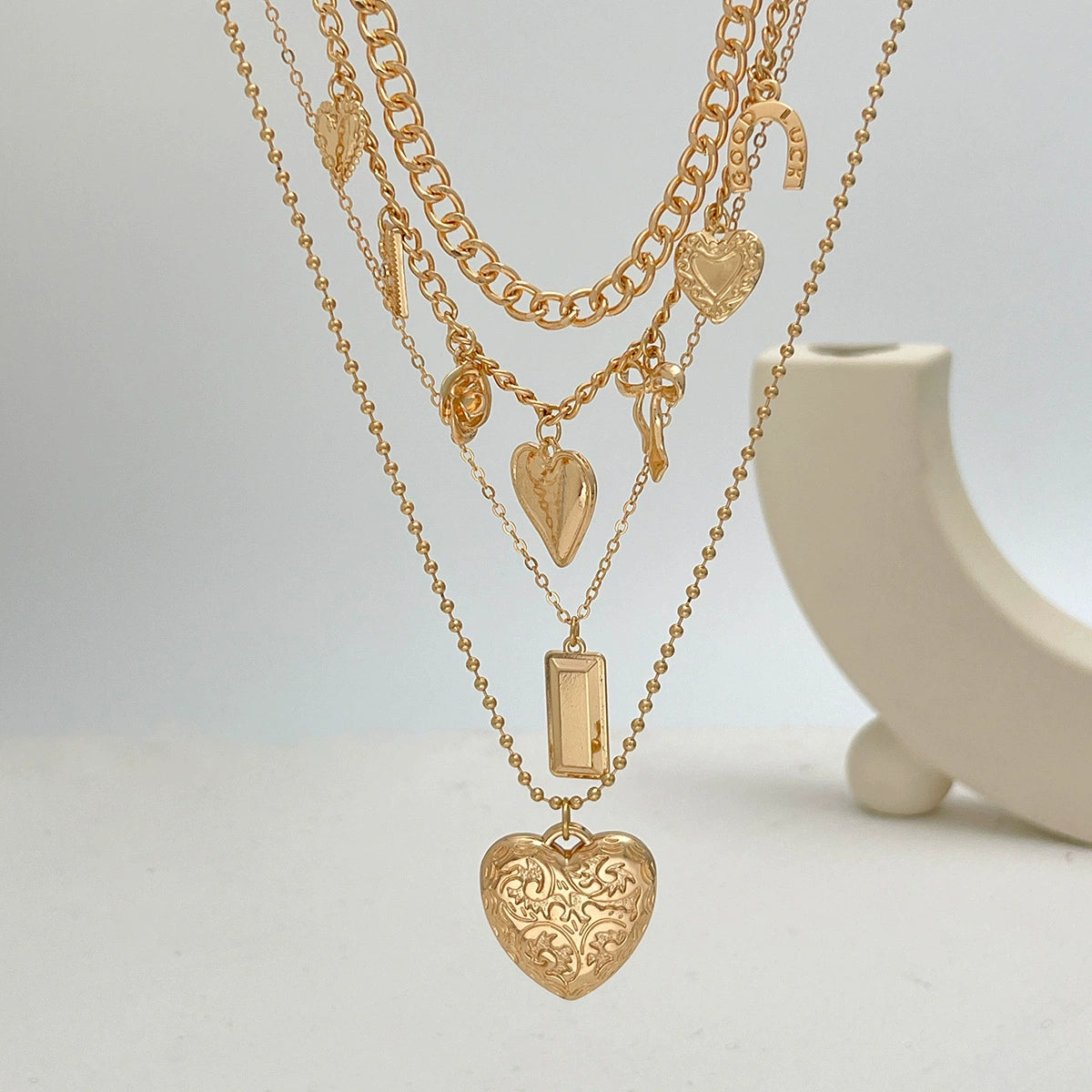Wholesale Pendant Necklace Retro Geometric Iron Copperclad Iron Alloy Chain With Love Bow Heart Ushaped Pattern Electroplated