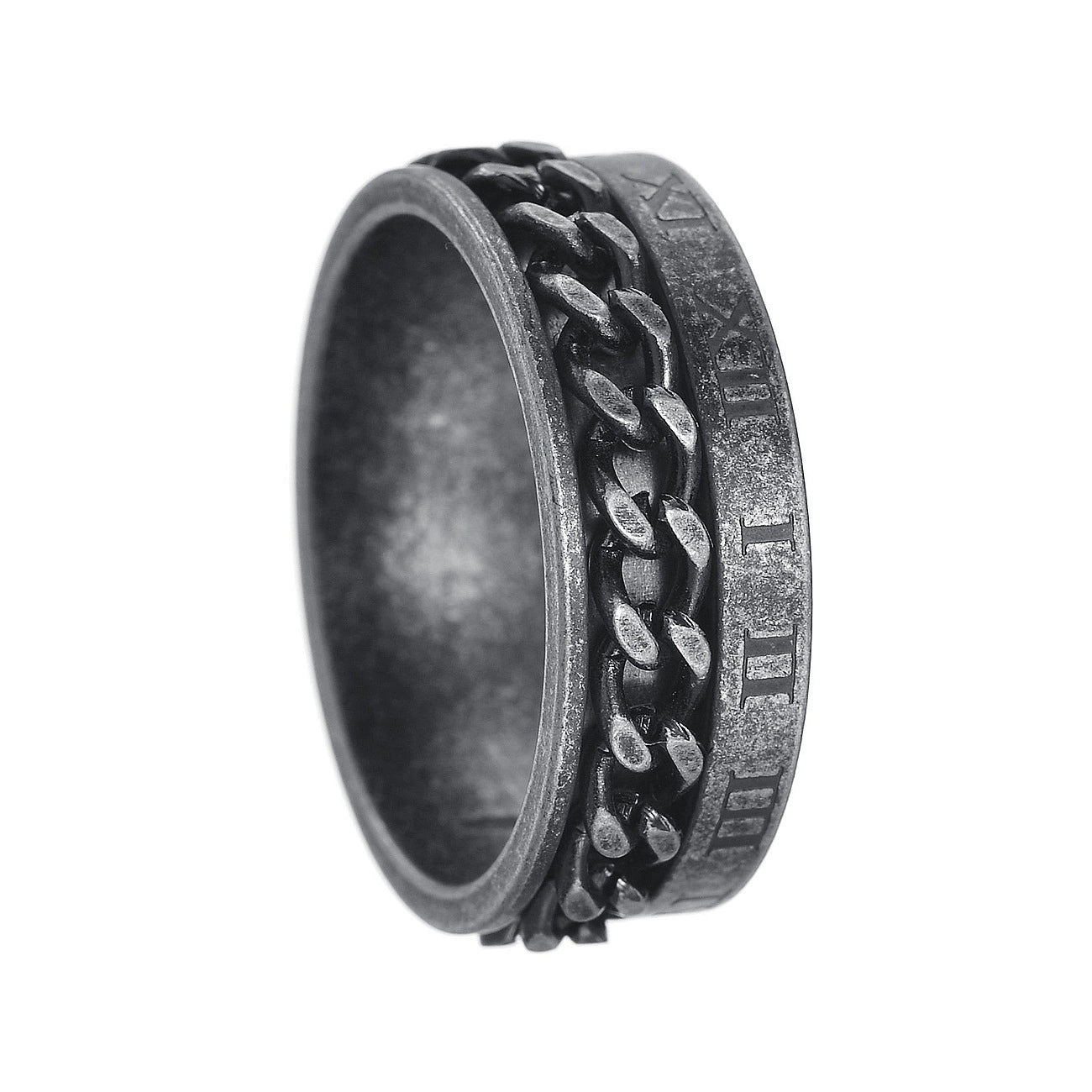 Wholesale Ring Titanium Steel Retro Distressed Style With Roman Numeral And Rotatable Chain Design