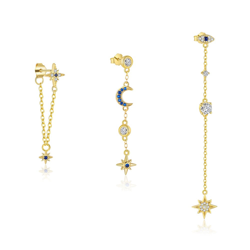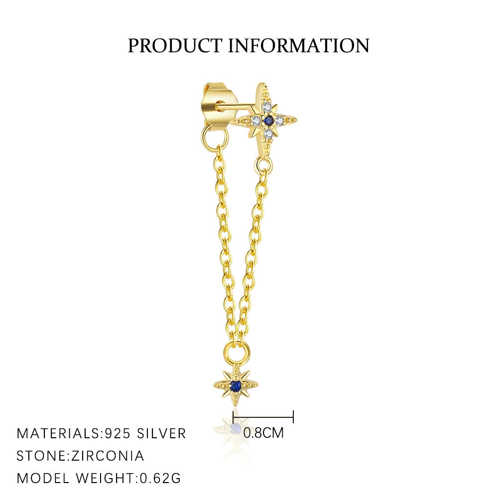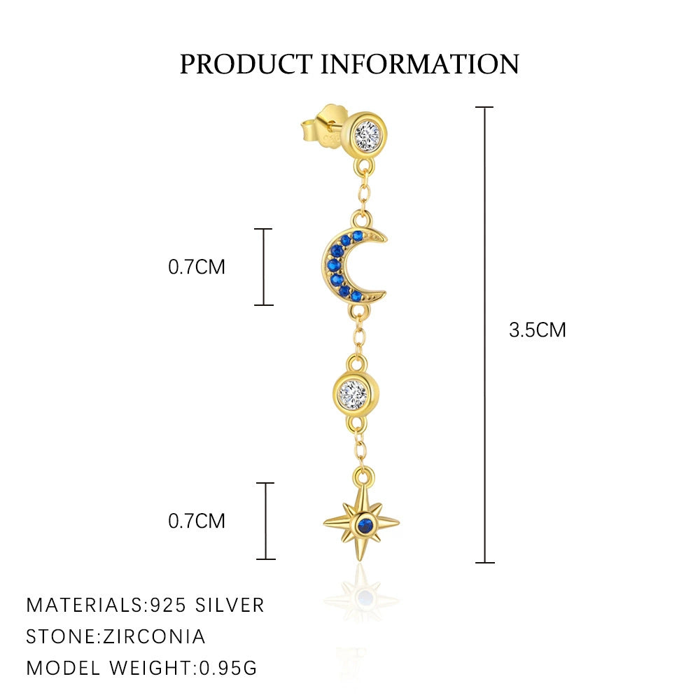 Wholesale S925 Sterling Silver Star Moon Tassel Earrings With Zirconia For Women Niche Design Star Shape