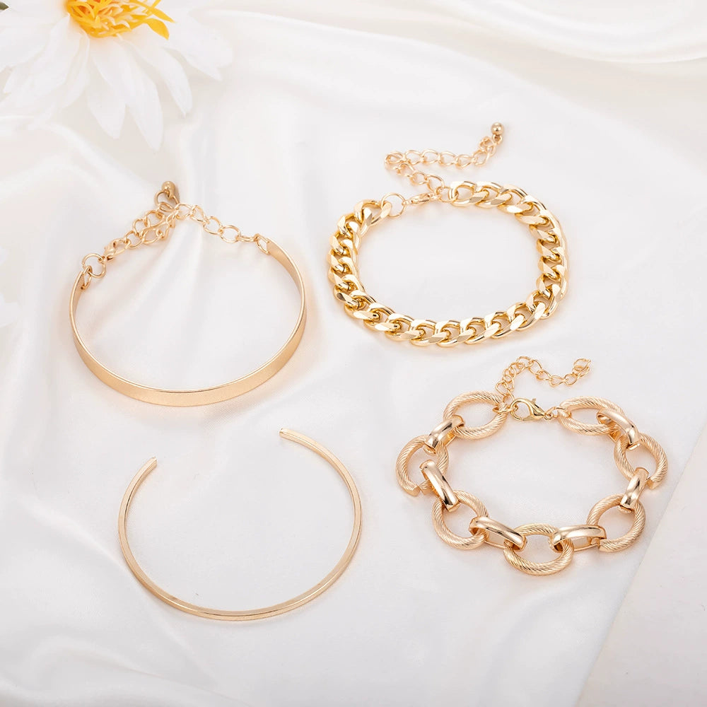 Wholesale Simple Golden Wide Open 4Piece Set Alloy Bracelet Jewelry With Geometric Style And Electroplating Treatment