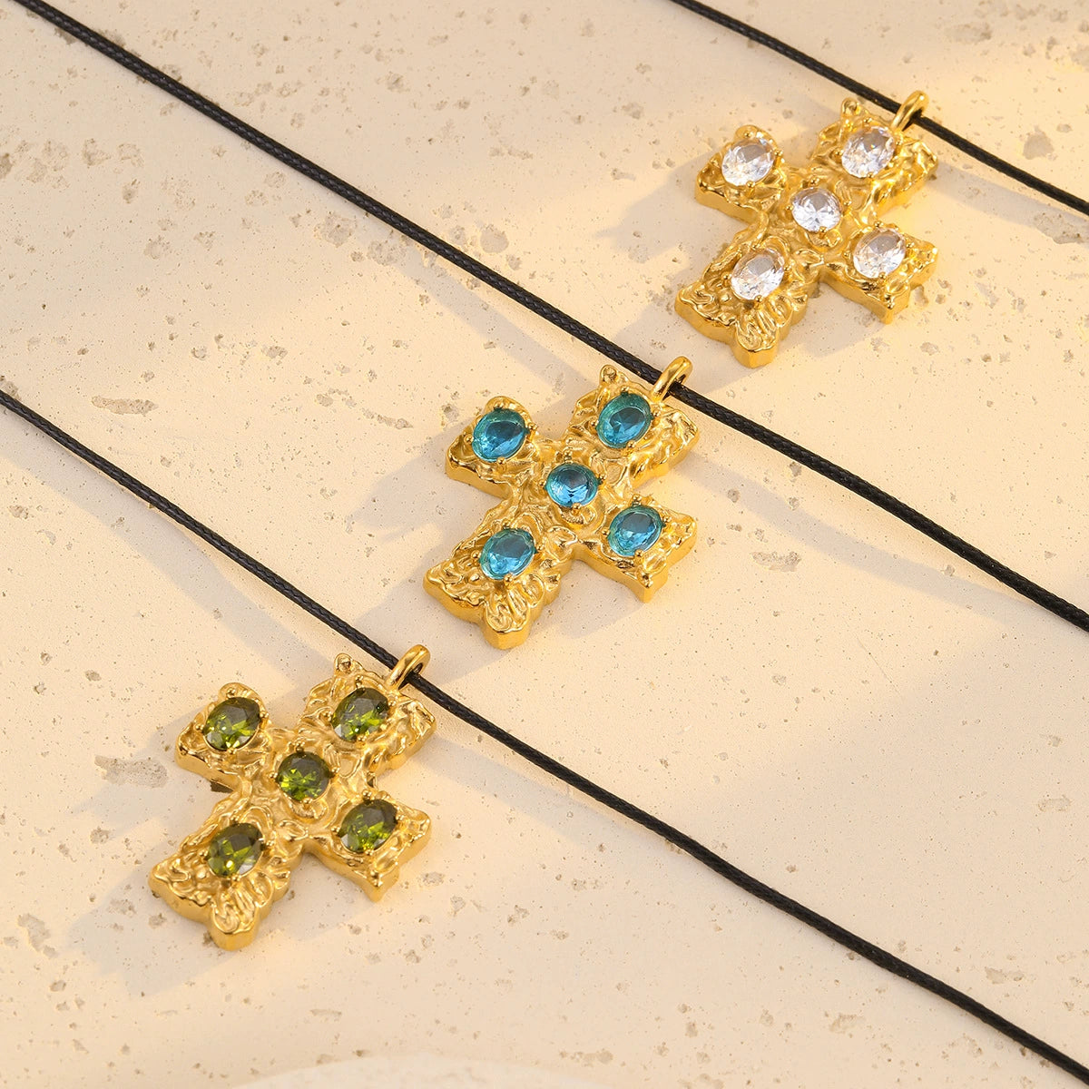Wholesale Stainless Steel Cross Zircon Titanium Steel Necklace Leather Rope Clavicle Chain Jewelry Electroplated For Women Fashion Style
