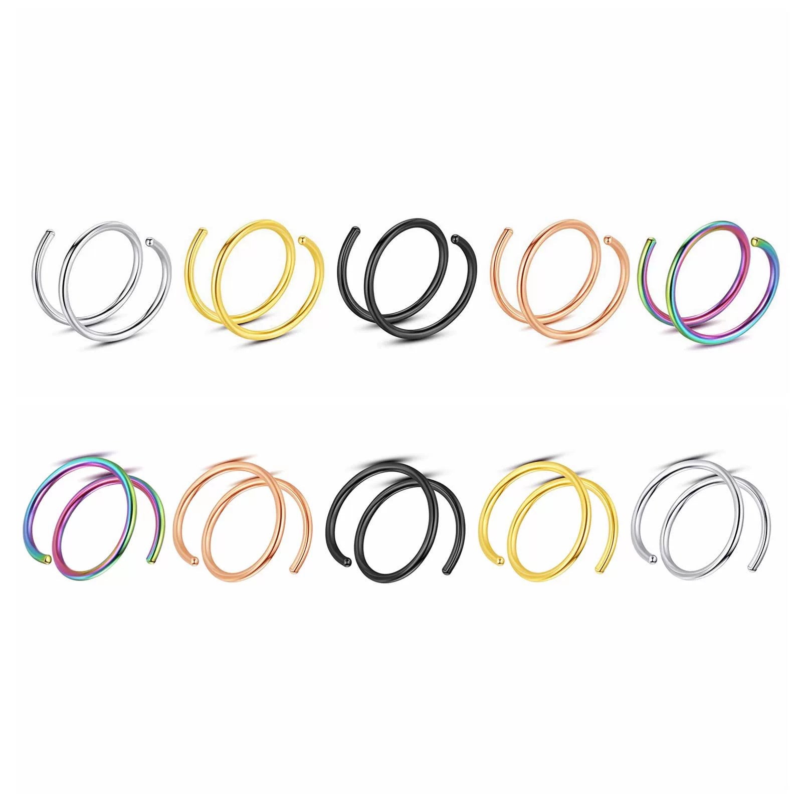 Wholesale Stainless Steel Double Layer Perforated Spiral Nose Ring With Geometric Design Electroplated Jewelry For Unisex