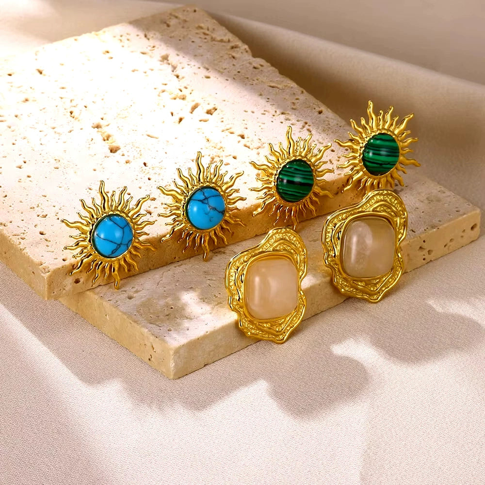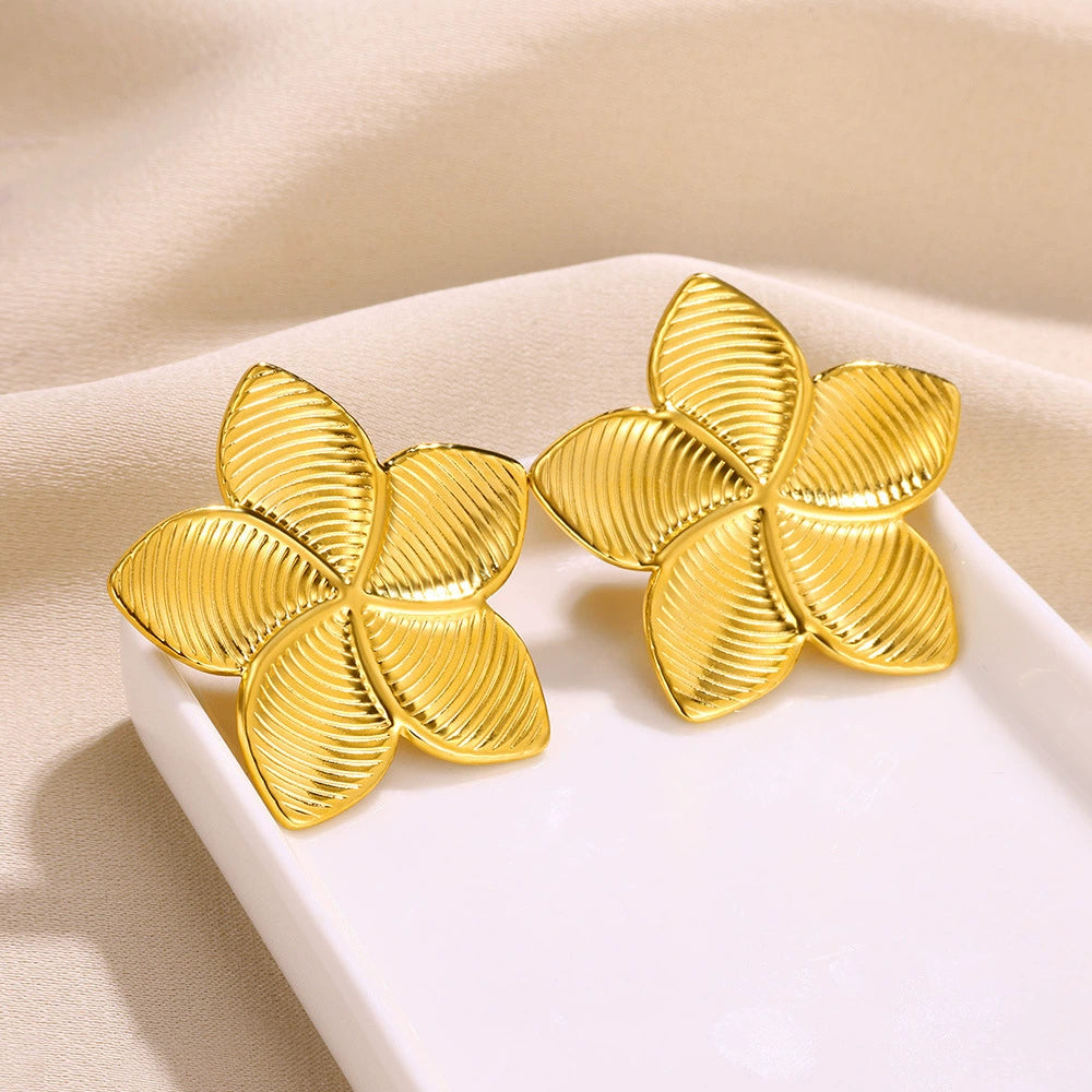 Wholesale Stainless Steel Flower Leaf Earrings With Electroplating Treatment In Ins Style