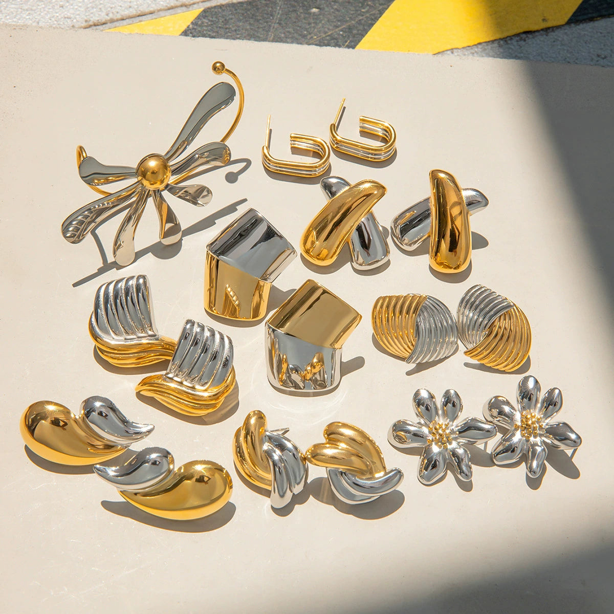 Wholesale Stainless Steel Geometric Contrast Color Earrings With Electroplating For Women