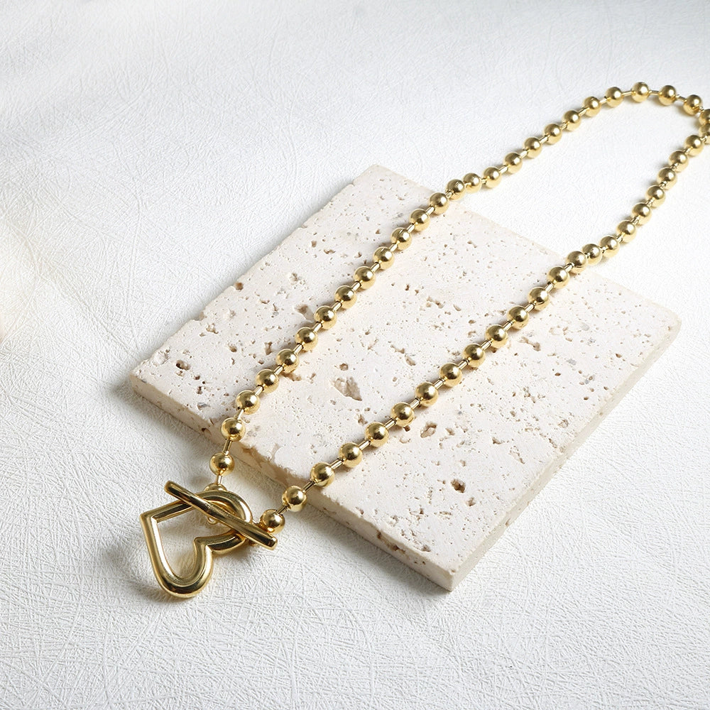 Wholesale Titanium Steel Electroplated Heart Shape Ball Chain Necklace Jewelry For Women